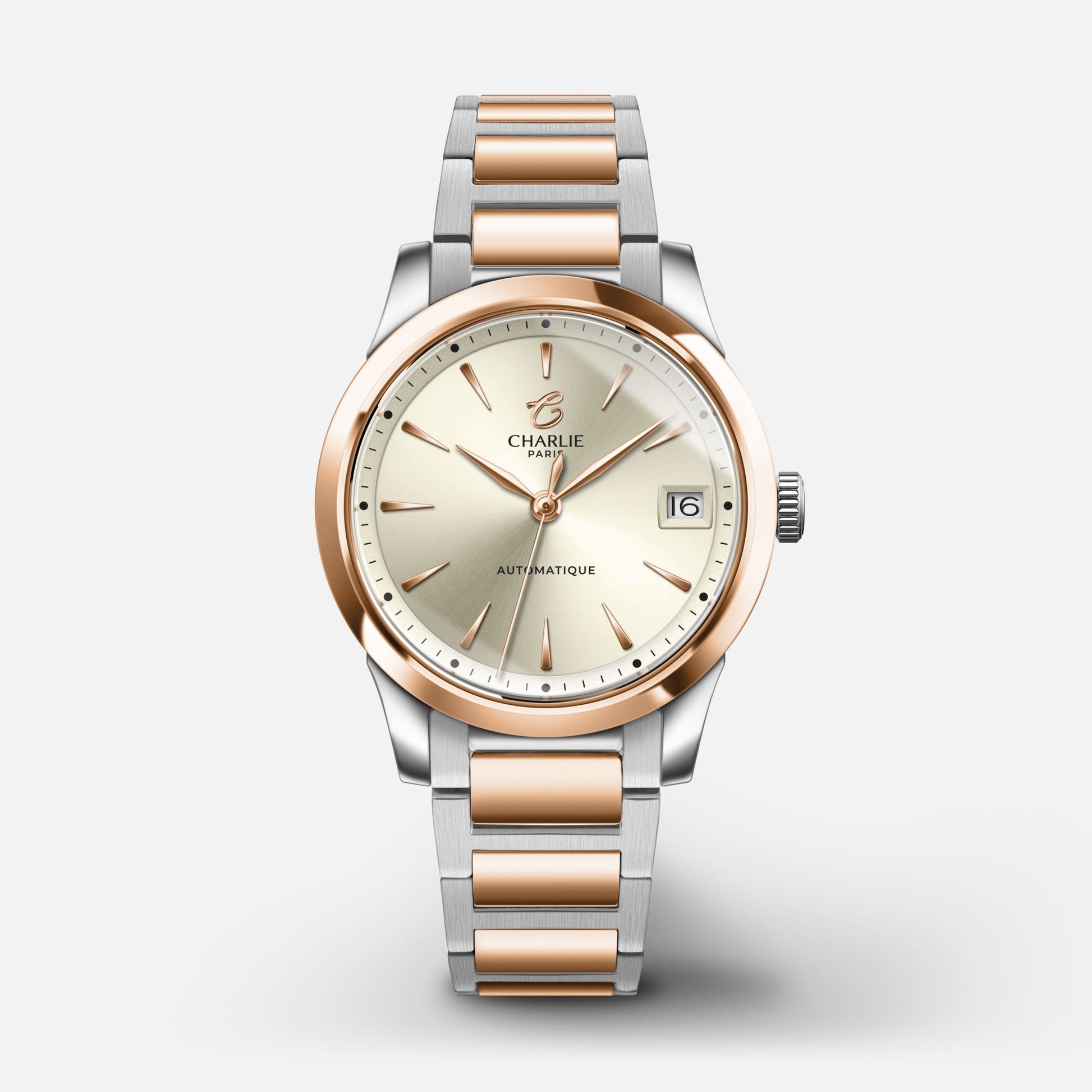 Dessinée et assemblée en France, l'Aurore avec mouvement mécanique automatique et cadran doré présente des lignes épurées, au design à la fois classique et contemporain. Cette montre étanche 10ATM pour femme flatte les poignets avec son boitier de 34mm de diamètre, sa complication Date à 3 heures, son bracelet en acier & doré et ses lignes dynamiques.