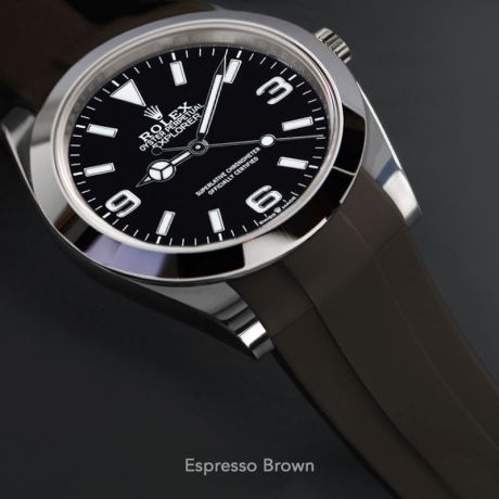 Bracelet en caoutchouc vulcanisé précisément calibré pour s'adapter à la Rolex Explorer 224270 40mm* (modèles 2023 à aujourd'hui uniquement). Ce bracelet utilise la technologie "Blocked Integration", incorporant des inserts solides pour un montage affleurant impeccable et immobile sur le boîtier de l'Explorer 40mm.