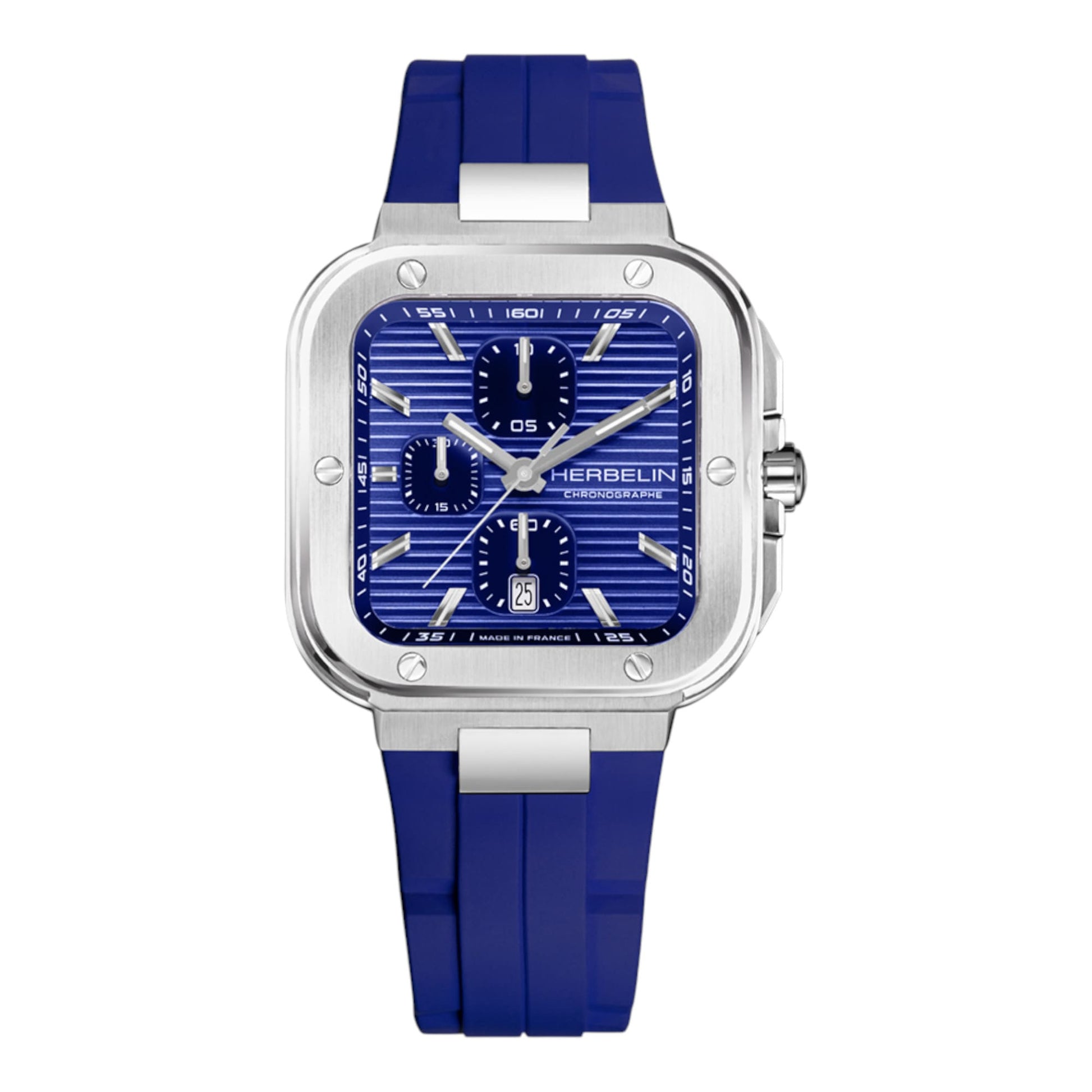 CAP CAMARAT SQUARE – Chronographe – Bleu & FKM BleuMontre Homme CAP CAMARAT SQUARE Chrono Bleu & FKM Bleu - Sport-Chic Élégant Découvrez la montre CAP CAMARAT SQUARE Chrono Bleu & FKM Bleu, une alliance parfaite de style néo-vintage et de performance. Boîtier en acier inoxydable 316L, cadran bleu cobalt, bracelet FKM bleu garanti 10 ans, étanche jusqu’à 100 mètres et mouvement suisse à quartz précis. CAP CAMARAT SQUARE Chrono Bleu & FKM Bleu incarne une allure sport-chic audacieuse. Ce chronographe allie performance, confort et design contemporain, inspiré du style néo-vintage des années 70. • Boîtier : Acier inoxydable 316L robuste, fini brossé avec facettes polies brillantes. |