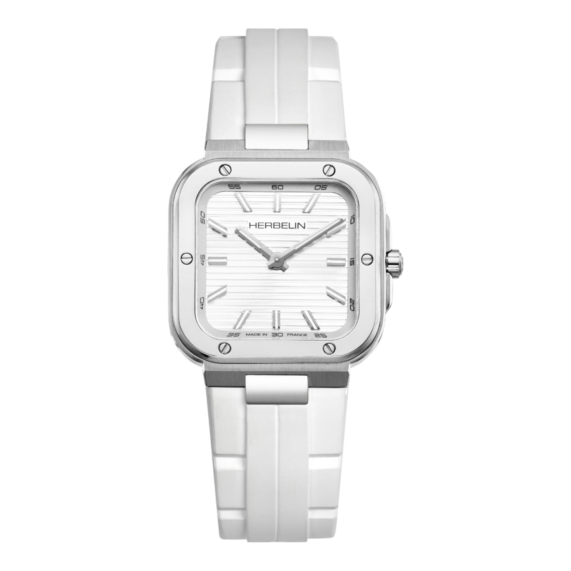 CAP CAMARAT Square DameIlluminez vos journées avec la montre CAP CAMARAT Square Dame Blanc, une pièce qui incarne l’élégance contemporaine et la subtilité. Son boîtier carré épuré, sublimé par une lunette ornée de six vis iconiques, reflète un équilibre parfait entre caractère et raffinement. Le cadran couleur rosé, délicatement frappé à l’horizontale, offre une teinte chaleureuse et lumineuse, tandis que le bracelet blanc en élastomère FKM ajoute une touche de modernité et de légèreté. Doux, souple et hypoallergénique, ce matériau assure un porté agréable, tout en soulignant l’allure distinctive de cette montre. Pensée pour les femmes en quête de sophistication, la CAP CAMARAT Square Dame Blanc s’adapte à toutes les occasions : des rendez-vous professionnels aux instants décontractés. Étanche jusqu’à 100 mètres et équipée d’un mouvement suisse réputé pour sa précision, cette montre est une véritable alliance de performance et d’esthétisme. Bien plus qu’un simple accessoire, cette création Herbelin célèbre une féminité audacieuse et lumineuse. Explorez la collection CAP CAMARAT Square Dame et laissez-vous séduire par l’excellence du savoir-faire horloger français. Esthétique :Le boîtier carré en acier inoxydable 316L, avec sa lunette ornée de six vis, apporte une touche de caractère et de raffinement. Le cadran couleur blanc, finement travaillé, offre une teinte chaleureuse et lumineuse. Le bracelet en élastomère FKM blanc est à la fois moderne, léger, et hypoallergénique, assurant un confort optimal. Style :Avec son mouvement quartz suisse de précision et son étanchéité jusqu’à 100 mètres, la CAP CAMARAT Square Dame Blanc est la montre idéale pour les femmes en quête de sophistication. Elle s’adapte parfaitement aux rendez-vous professionnels et aux instants décontractés, ajoutant une touche de féminité audacieuse et lumineuse à votre look. Invitation à Découvrir :Découvrez dès maintenant la collection CAP CAMARAT Square Dame de Herbelin et laissez-vous séduire par l’excellence du savoir-faire horloger français. Laissez la CAP CAMARAT Square Dame rosé & Blanc illuminer vos journées avec style et élégance. |