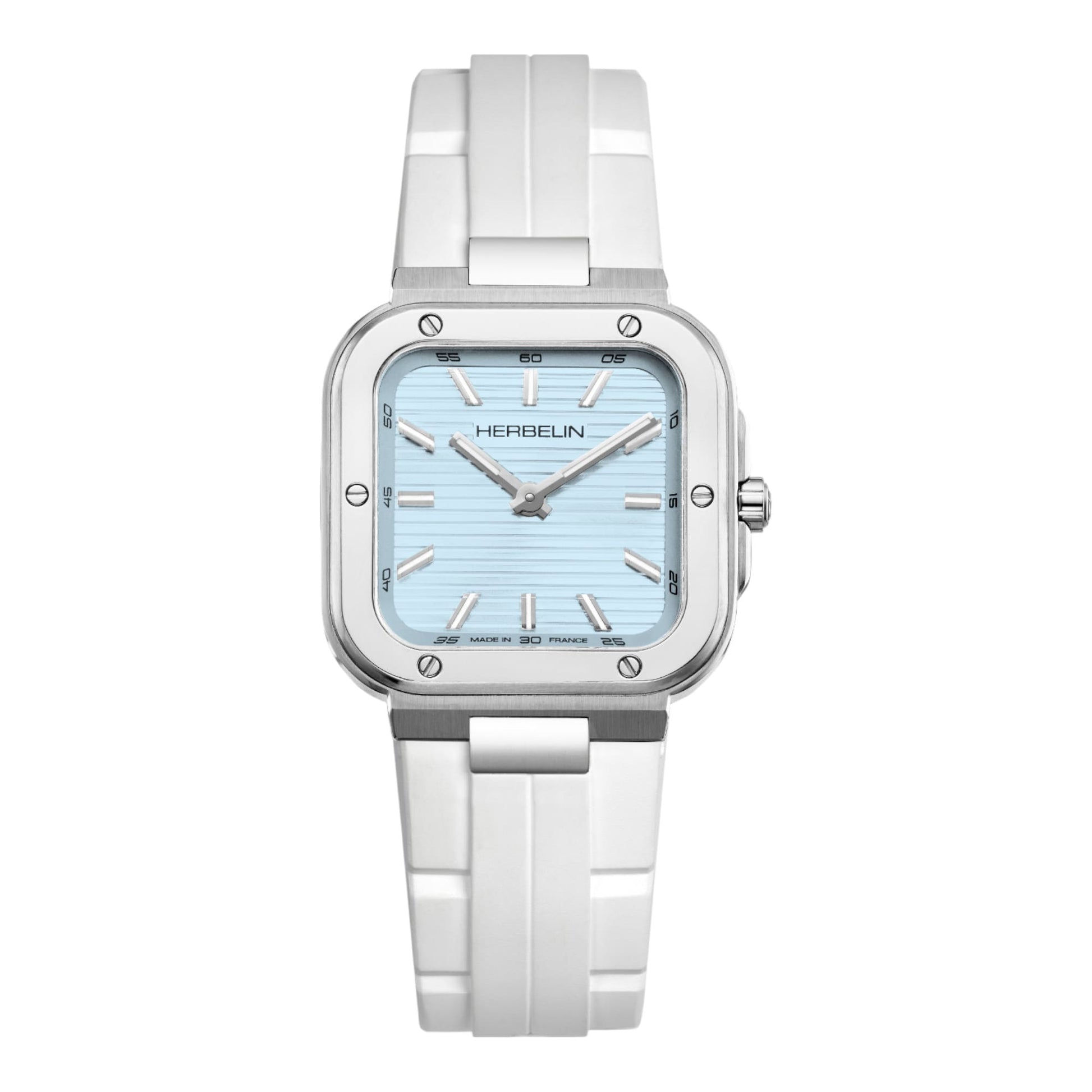 CAP CAMARAT Square DameIlluminez vos journées avec la montre CAP CAMARAT Square Dame bleu arctique & Blanc, une pièce qui incarne l’élégance contemporaine et la subtilité. Son boîtier carré épuré, sublimé par une lunette ornée de six vis iconiques, reflète un équilibre parfait entre caractère et raffinement. Le cadran couleur bleu arctique, délicatement frappé à l’horizontale, offre une teinte chaleureuse et lumineuse, tandis que le bracelet blanc en élastomère FKM ajoute une touche de modernité et de légèreté. Doux, souple et hypoallergénique, ce matériau assure un porté agréable, tout en soulignant l’allure distinctive de cette montre. Pensée pour les femmes en quête de sophistication, la CAP CAMARAT Square Dame bleu arctique & Blanc s’adapte à toutes les occasions : des rendez-vous professionnels aux instants décontractés. Étanche jusqu’à 100 mètres et équipée d’un mouvement suisse réputé pour sa précision, cette montre est une véritable alliance de performance et d’esthétisme. Bien plus qu’un simple accessoire, cette création Herbelin célèbre une féminité audacieuse et lumineuse. Explorez la collection CAP CAMARAT Square Dame et laissez-vous séduire par l’excellence du savoir-faire horloger français. Esthétique :Le boîtier carré en acier inoxydable 316L, avec sa lunette ornée de six vis, apporte une touche de caractère et de raffinement. Le cadran couleur bleu arctique, finement travaillé, offre une teinte chaleureuse et lumineuse. Le bracelet en élastomère FKM blanc est à la fois moderne, léger, et hypoallergénique, assurant un confort optimal. Style :Avec son mouvement quartz suisse de précision et son étanchéité jusqu’à 100 mètres, la CAP CAMARAT Square Dame bleu arctique & Blanc est la montre idéale pour les femmes en quête de sophistication. Elle s’adapte parfaitement aux rendez-vous professionnels et aux instants décontractés, ajoutant une touche de féminité audacieuse et lumineuse à votre look. Invitation à Découvrir :Découvrez dès maintenant la collection CAP CAMARAT Square Dame de Herbelin et laissez-vous séduire par l’excellence du savoir-faire horloger français. Laissez la CAP CAMARAT Square Dame bleu arctique & Blanc illuminer vos journées avec style et élégance. |