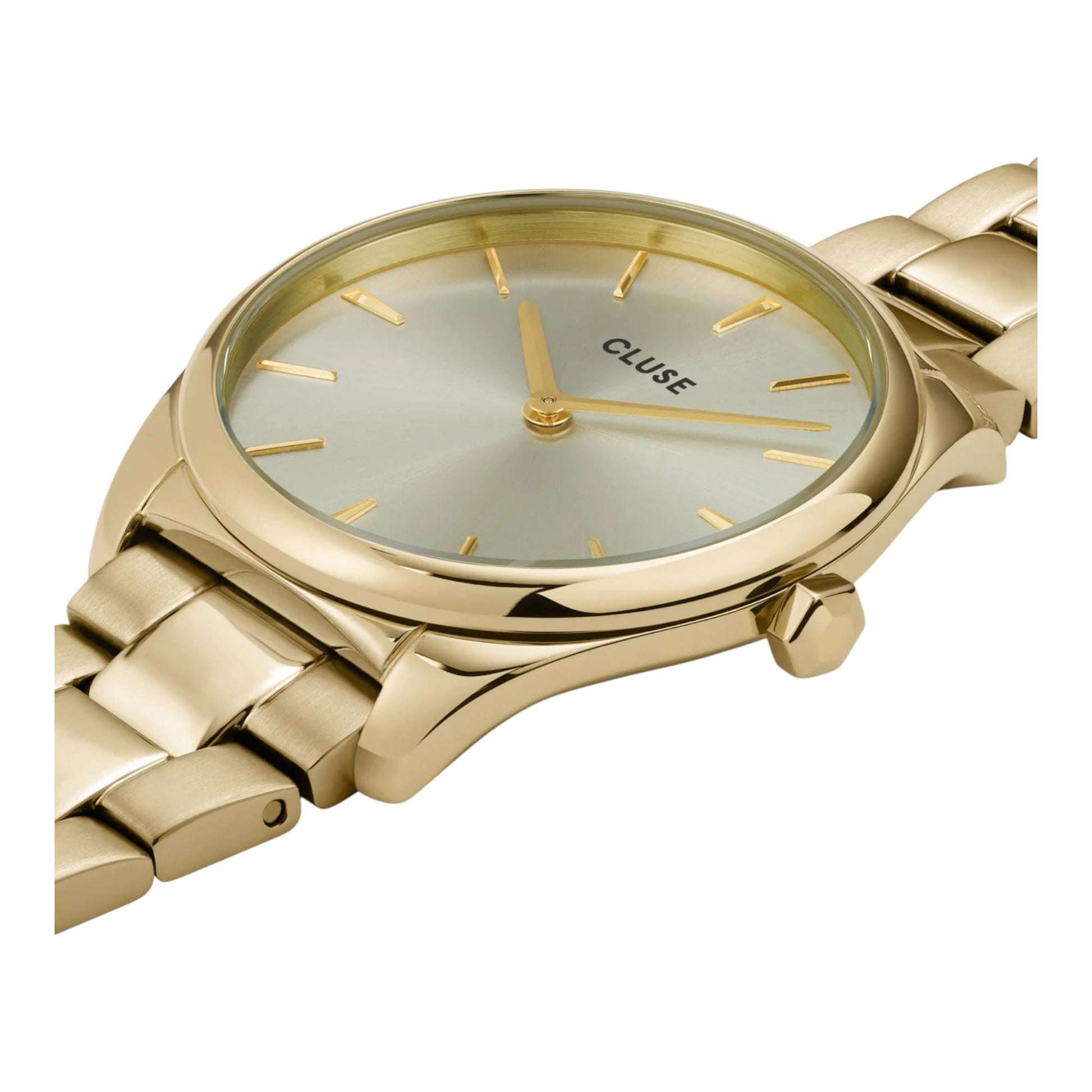 Plus petite, mais toujours autant de style. La montre Féroce Petite est l’alliance parfaite entre le style minimaliste et le style contemporain. Elle s’adapte parfaitement pour un look de jour comme de nuit. Avec son boîtier de 31,5 mm, cette petite montre ira parfaitement à chaque poignet. Design et StylesLa montre CLUSE Féroce Petite pour femmes est disponible dans différents coloris, comme la couleur or, argent et or rose. Son bracelet est proposé en maille, cuir et acier, offrant une variété de choix pour s’adapter à tous les styles. Avec la Féroce Petite, faites le choix d’une montre durable, conçue avec des matériaux de qualité. PersonnalisationVous pouvez facilement changer le bracelet de votre montre CLUSE Féroce Petite avec n’importe quel bracelet de montre CLUSE de 16 mm en cuir, en mesh ou à maillons en acier inoxydable, selon votre style. Cette flexibilité vous permet de personnaliser votre montre pour refléter votre humeur et vos tenues. Nos montres CLUSE pour femmes sont faites pour être portées du matin au soir. La montre Féroce Petite allie élégance et praticité, offrant une multitude d’options pour personnaliser votre style. Découvrez la Féroce Petite et ajoutez une touche de sophistication à votre quotidien. |