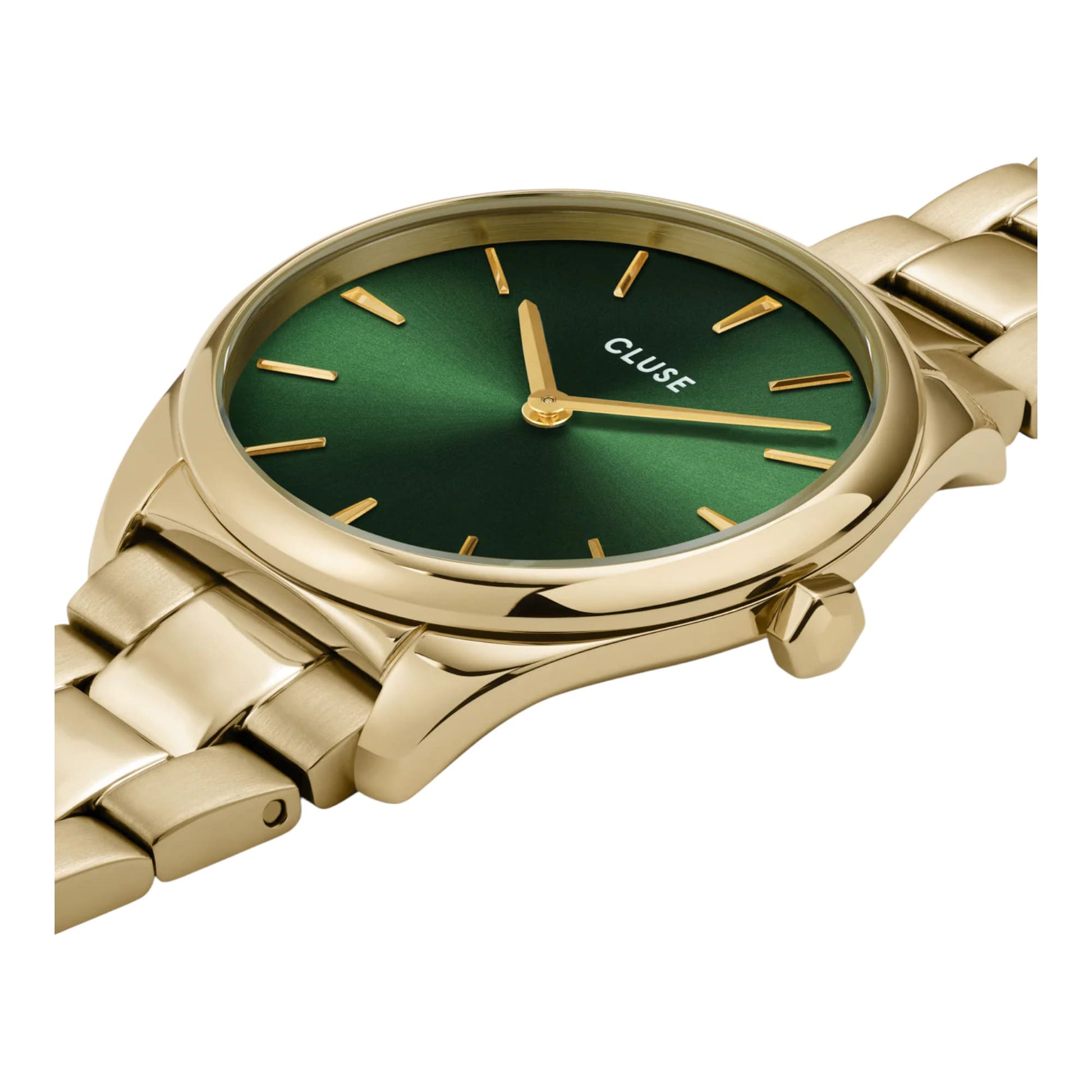 Plus petite, mais toujours autant de style. La montre Féroce Petite est l’alliance parfaite entre le style minimaliste et le style contemporain. Elle s’adapte parfaitement pour un look de jour comme de nuit. Avec son boîtier de 31,5 mm, cette petite montre ira parfaitement à chaque poignet. Design et StylesLa montre CLUSE Féroce Petite pour femmes est disponible dans différents coloris, comme la couleur or, argent et or rose. Son bracelet est proposé en maille, cuir et acier, offrant une variété de choix pour s’adapter à tous les styles. Avec la Féroce Petite, faites le choix d’une montre durable, conçue avec des matériaux de qualité. PersonnalisationVous pouvez facilement changer le bracelet de votre montre CLUSE Féroce Petite avec n’importe quel bracelet de montre CLUSE de 16 mm en cuir, en mesh ou à maillons en acier inoxydable, selon votre style. Cette flexibilité vous permet de personnaliser votre montre pour refléter votre humeur et vos tenues. Nos montres CLUSE pour femmes sont faites pour être portées du matin au soir. La montre Féroce Petite allie élégance et praticité, offrant une multitude d’options pour personnaliser votre style. Découvrez la Féroce Petite et ajoutez une touche de sophistication à votre quotidien. |