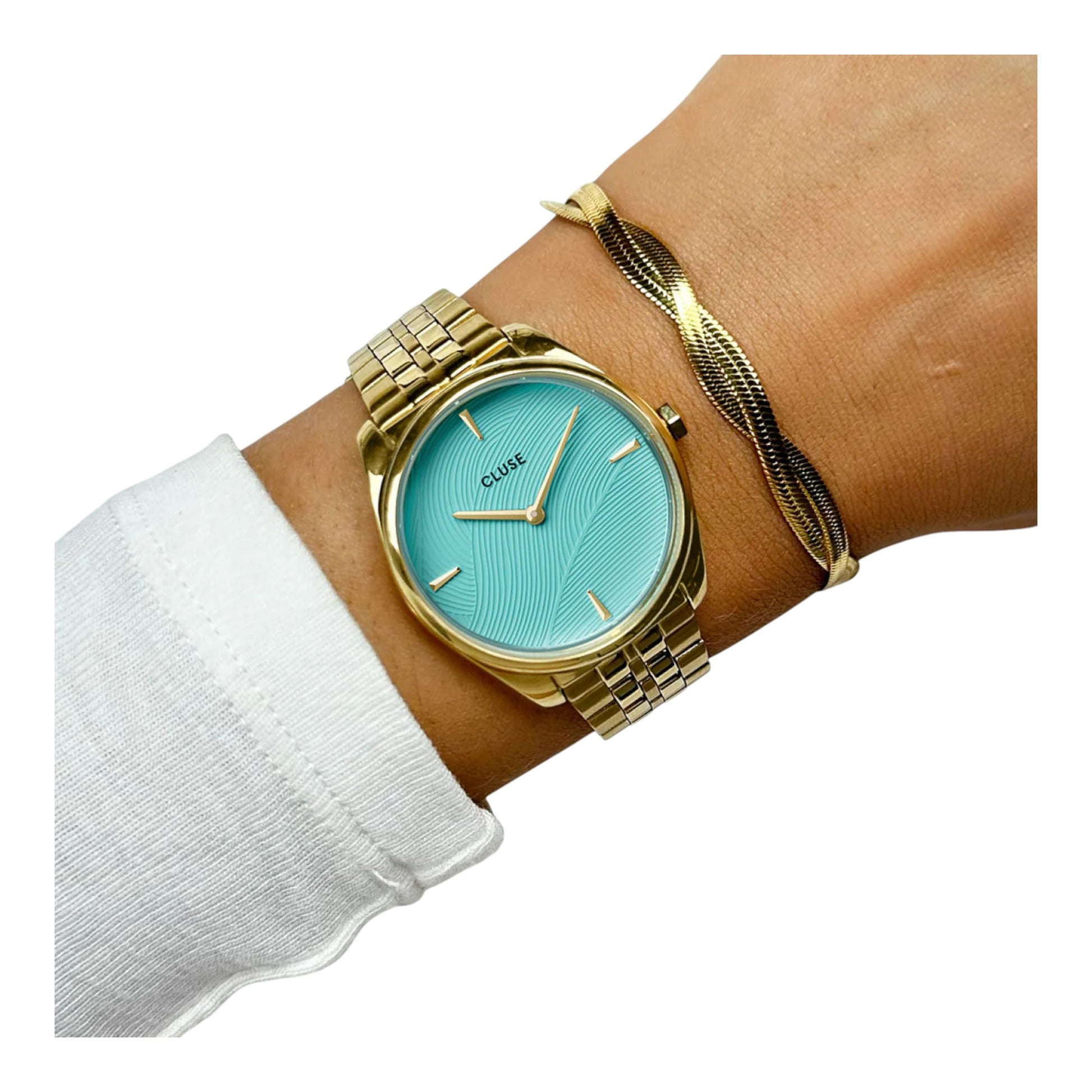 Plus petite, mais toujours autant de style. La montre Féroce Petite est l’alliance parfaite entre le style minimaliste et le style contemporain. Elle s’adapte parfaitement pour un look de jour comme de nuit. Avec son boîtier de 31,5 mm, cette petite montre ira parfaitement à chaque poignet. Design et StylesLa montre CLUSE Féroce Petite pour femmes est disponible dans différents coloris, comme la couleur or, argent et or rose. Son bracelet est proposé en maille, cuir et acier, offrant une variété de choix pour s’adapter à tous les styles. Avec la Féroce Petite, faites le choix d’une montre durable, conçue avec des matériaux de qualité. PersonnalisationVous pouvez facilement changer le bracelet de votre montre CLUSE Féroce Petite avec n’importe quel bracelet de montre CLUSE de 16 mm en cuir, en mesh ou à maillons en acier inoxydable, selon votre style. Cette flexibilité vous permet de personnaliser votre montre pour refléter votre humeur et vos tenues. Nos montres CLUSE pour femmes sont faites pour être portées du matin au soir. La montre Féroce Petite allie élégance et praticité, offrant une multitude d’options pour personnaliser votre style. Découvrez la Féroce Petite et ajoutez une touche de sophistication à votre quotidien. |