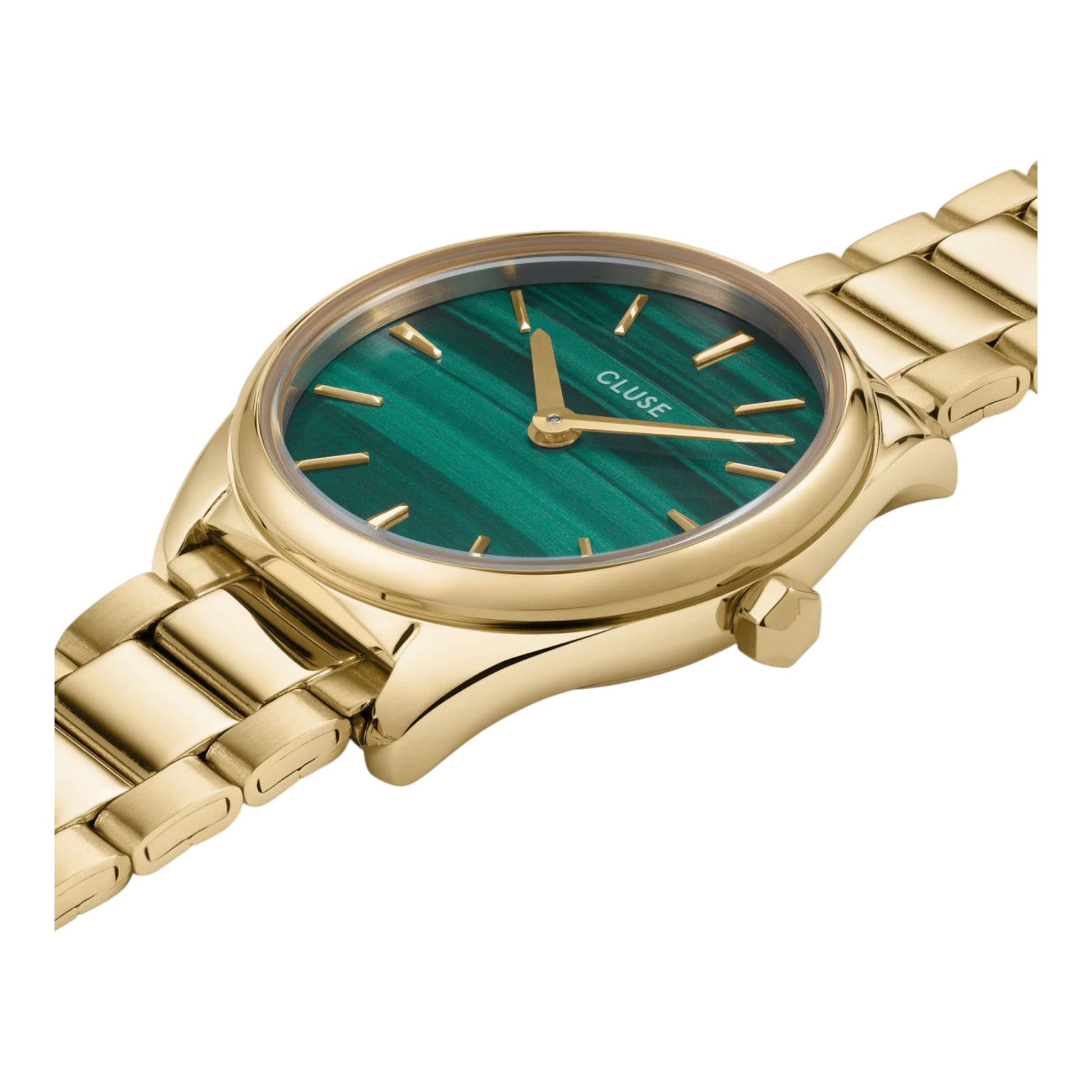 Féroce Mini est le plus petit modèle de notre collection de montres Féroce, la plus vendue, mais il est unique en son genre. Notre Féroce Mini associe harmonieusement minimalisme et détails raffinés accentués, ce qui en fait un excellent complément à toute collection de montres pour femmes. Avec son boîtier de 25 mm, cette montre est idéale pour les petits poignets, mais constitue également un accessoire élégant pour toute autre taille de poignet. Cette montre pour dames à petit cadran fera indéniablement sensation ! Design et StylesLa montre CLUSE Féroce Mini pour femme est disponible dans une variété de combinaisons de couleurs, y compris nos montres best-sellers de couleur or et bicolores. Les bracelets de montre multi-liens, nos dernières nouveautés, offrent à ces petites montres une touche supplémentaire très particulière. Toutes les montres de cette collection sont des accessoires élégants et polyvalents qui conviennent à toutes les occasions. Mais n’oubliez pas que cette petite montre de couleur or attirera tous les regards et vous assurera une avalanche de commentaires élogieux ! Personnalisation et ConfortTout comme les autres bracelets de montre en acier CLUSE, vous pouvez facilement régler vous-même la longueur du bracelet en acier inoxydable de la montre Féroce Mini, grâce à son curseur. Cette flexibilité vous permet d’ajuster la montre pour un confort optimal. Matériaux de QualitéFabriquée uniquement en matériaux de la plus haute qualité, votre montre a été conçue pour durer. Elle est le choix idéal pour celles qui souhaitent combiner élégance et durabilité. Êtes-vous prête à briller ? La montre CLUSE Féroce Mini est le choix parfait pour ajouter une touche de sophistication à votre style quotidien. Avec son design minimaliste et raffiné, ses bracelets innovants et sa qualité exceptionnelle, cette montre est un accessoire incontournable pour toute femme moderne. |