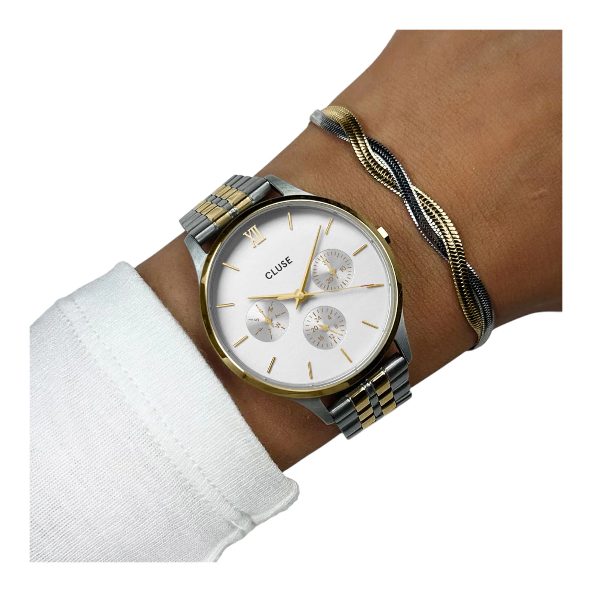 Entre le classique intemporel et un design unique, nous vous présentons les montres CLUSE Minuit Multifunction, conçues pour les femmes qui recherchent l’élégance et la fonctionnalité. Ces montres sont l’expression même de votre propre style. Design et FonctionnalitésLa montre Minuit Multifunction est une montre chrono avec un cadran élégant qui apporte une touche chic à votre tenue. Elle est équipée de trois sous-cadrans conçus pour suivre avec précision le jour et l’heure, ajoutant une dimension fonctionnelle à son esthétique raffinée. Taille et ConfortTout comme nos montres Minuit, les montres Minuit Multifunction sont de taille moyenne, ce qui en fait l’accessoire idéal pour tous les poignets. Le bracelet en acier inoxydable est facilement ajustable grâce à un curseur, vous permettant de régler vous-même la longueur pour un confort optimal. PersonnalisationComme pour toutes les montres CLUSE, les bracelets des montres Minuit Multifunction peuvent être interchangés avec n’importe quel bracelet de montre CLUSE de 16 mm, disponible sur notre site Internet, grâce à notre mécanisme cliquable. Cette flexibilité vous permet de personnaliser votre montre selon vos envies et vos tenues. Couleurs DisponiblesCes montres pour femmes sont disponibles dans différents coloris : or, argent et or rose, offrant une variété de choix pour s’adapter à tous les styles. Faites l’expérience de l’alliance parfaite entre le classique et le contemporain avec les montres CLUSE Minuit Multifunction. Que vous les portiez de jour comme de nuit, ces montres vous permettront d’exprimer votre style avec élégance et fonctionnalité. Découvrez nos autres collections de montres CLUSE pour femmes et trouvez celle qui vous convient. |