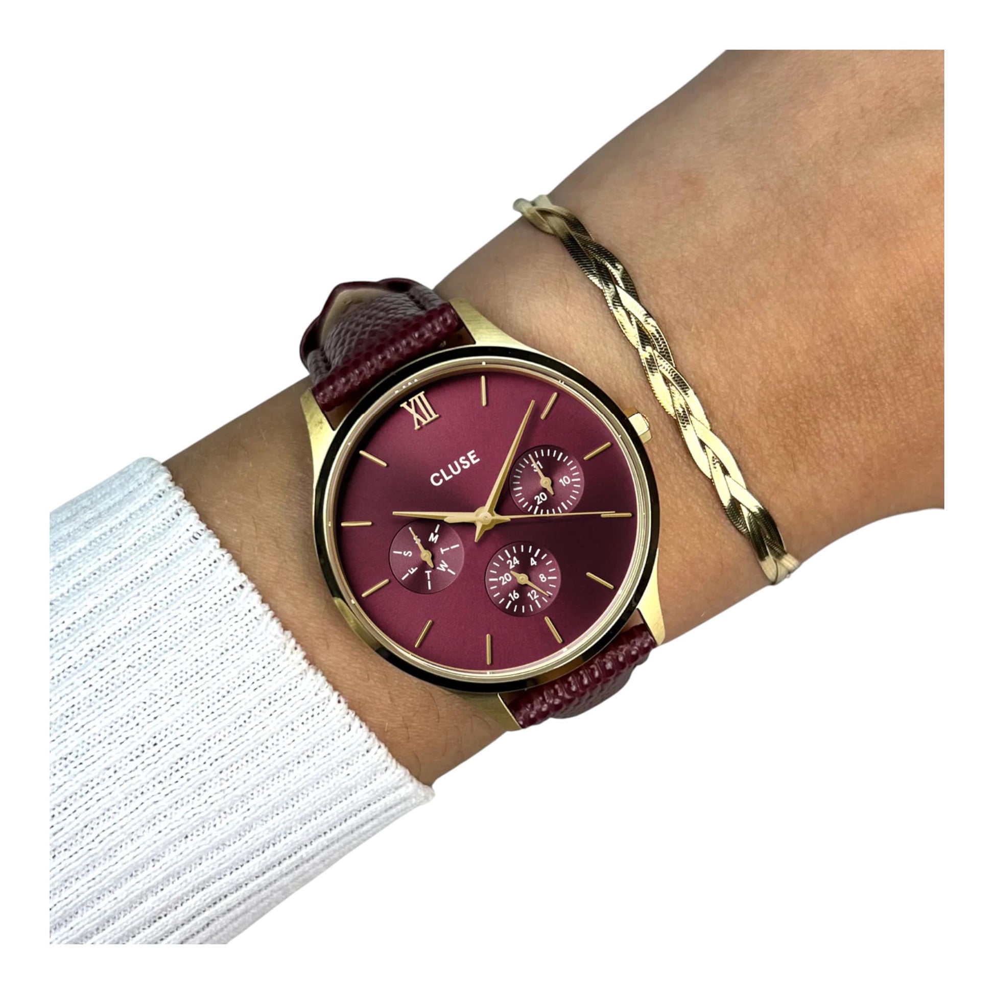 Entre le classique intemporel et un design unique, nous vous présentons les montres CLUSE Minuit Multifunction, conçues pour les femmes qui recherchent l’élégance et la fonctionnalité. Ces montres sont l’expression même de votre propre style. Design et FonctionnalitésLa montre Minuit Multifunction est une montre chrono avec un cadran élégant qui apporte une touche chic à votre tenue. Elle est équipée de trois sous-cadrans conçus pour suivre avec précision le jour et l’heure, ajoutant une dimension fonctionnelle à son esthétique raffinée. Taille et ConfortTout comme nos montres Minuit, les montres Minuit Multifunction sont de taille moyenne, ce qui en fait l’accessoire idéal pour tous les poignets. Le bracelet en acier inoxydable est facilement ajustable grâce à un curseur, vous permettant de régler vous-même la longueur pour un confort optimal. PersonnalisationComme pour toutes les montres CLUSE, les bracelets des montres Minuit Multifunction peuvent être interchangés avec n’importe quel bracelet de montre CLUSE de 16 mm, disponible sur notre site Internet, grâce à notre mécanisme cliquable. Cette flexibilité vous permet de personnaliser votre montre selon vos envies et vos tenues. Couleurs DisponiblesCes montres pour femmes sont disponibles dans différents coloris : or, argent et or rose, offrant une variété de choix pour s’adapter à tous les styles. Faites l’expérience de l’alliance parfaite entre le classique et le contemporain avec les montres CLUSE Minuit Multifunction. Que vous les portiez de jour comme de nuit, ces montres vous permettront d’exprimer votre style avec élégance et fonctionnalité. Découvrez nos autres collections de montres CLUSE pour femmes et trouvez celle qui vous convient. |