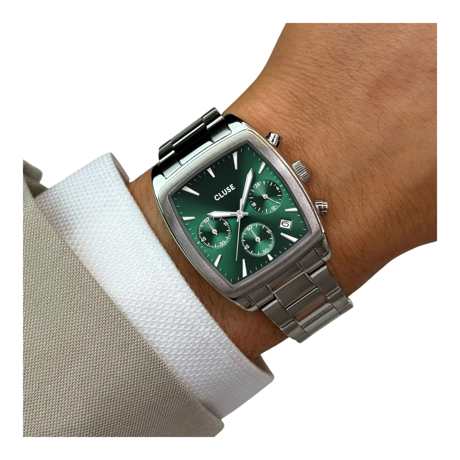 Découvrez la collection de montres CLUSE Quartaut pour homme. Design audacieux et chronographe précis dans un boîtier élégant en acier inoxydable. Choisissez parmi les coloris vert, bleu ou argenté pour un look sophistiqué au quotidien. Parfaite pour toutes les occasions. • Boîtier : Forme tonneau rectangulaire en acier inoxydable poli et brossé pour une solidité et une sophistication optimales. La collection de montres CLUSE Quartaut est conçue pour les hommes qui recherchent à la fois style et précision. Avec son boîtier élégant en acier inoxydable, cette montre chrono allie design audacieux et fonctionnalité. Sa forme rectangulaire et son bracelet à 3 maillons en acier inoxydable argenté apportent une touche de sophistication à votre tenue quotidienne. Disponible en plusieurs coloris (vert, bleu, argenté), la montre Quartaut s’adapte parfaitement à votre style de vie, que ce soit pour le travail ou les sorties en soirée. •Polyvalence : Parfaite pour une utilisation quotidienne, que ce soit en journée ou en soirée. Sublimez votre style avec la collection Quartaut de CLUSE. Explorez notre gamme complète de montres pour hommes et trouvez le modèle qui vous convient le mieux. Que vous préfériez un look classique ou audacieux, la montre Quartaut répondra à vos attentes en matière de style et de précision. |