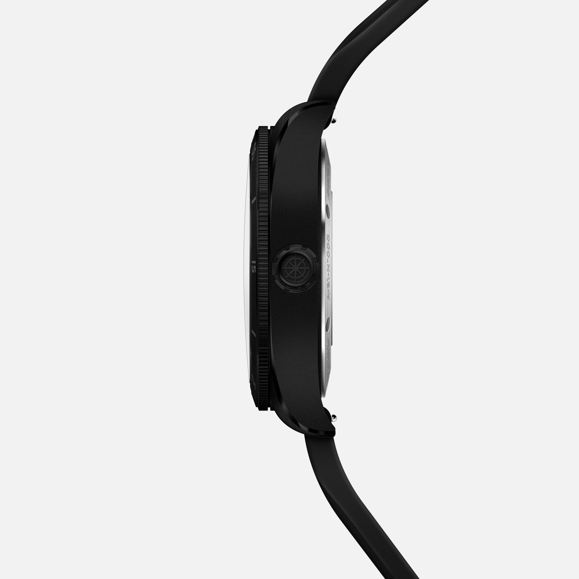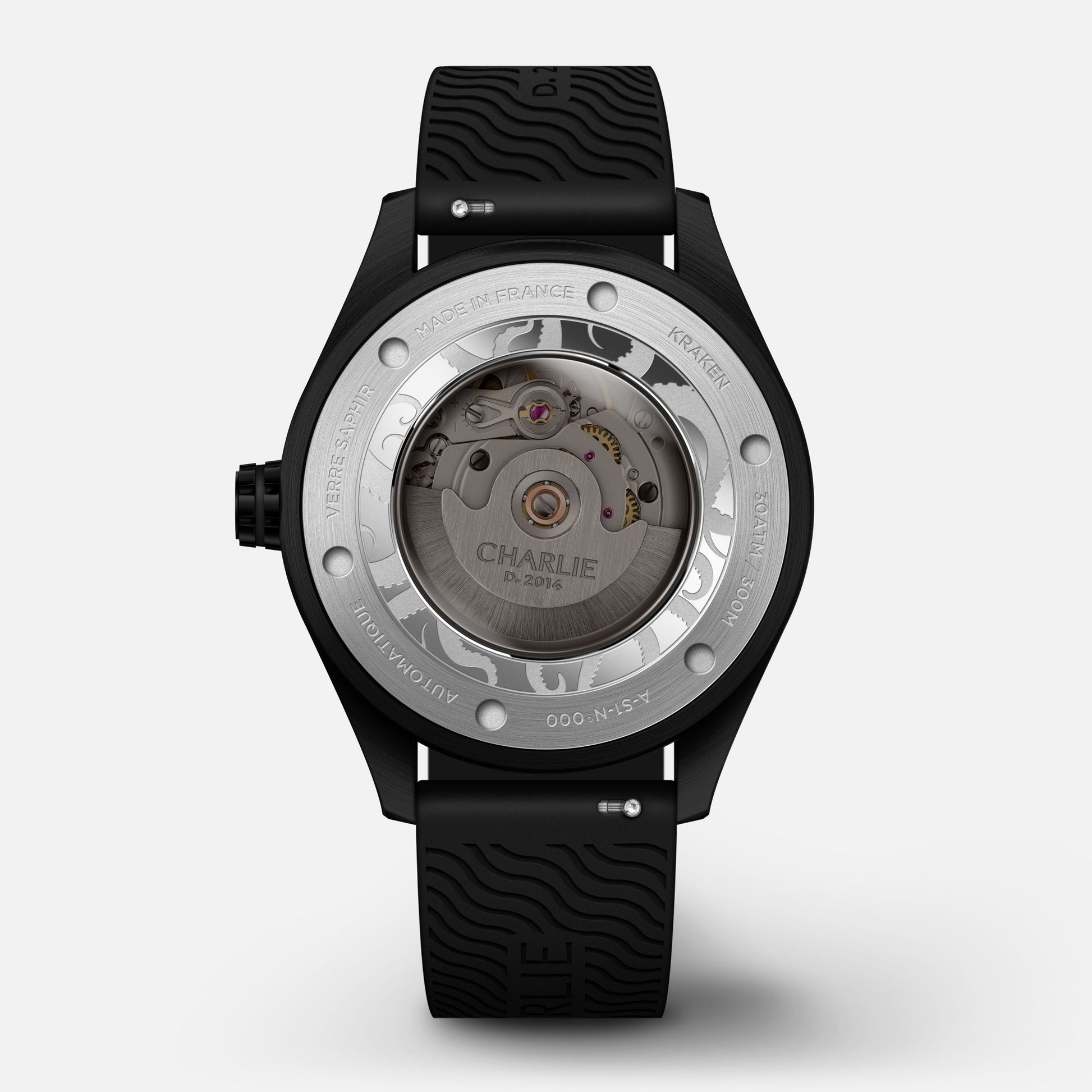 Dessinée et assemblée en France, équipée du mouvement automatique Suisse Soprod P024, étanche à 300m, cette montre pour homme de 40mm de diamètre s’affirme comme un garde-temps sportif au fort contenu horloger. Son cadran transparent en verre saphir teinté noir présente une esthétique aussi bien sportive qu'élégante qui saura séduire les amateurs de sensations fortes dans leur quotidien.