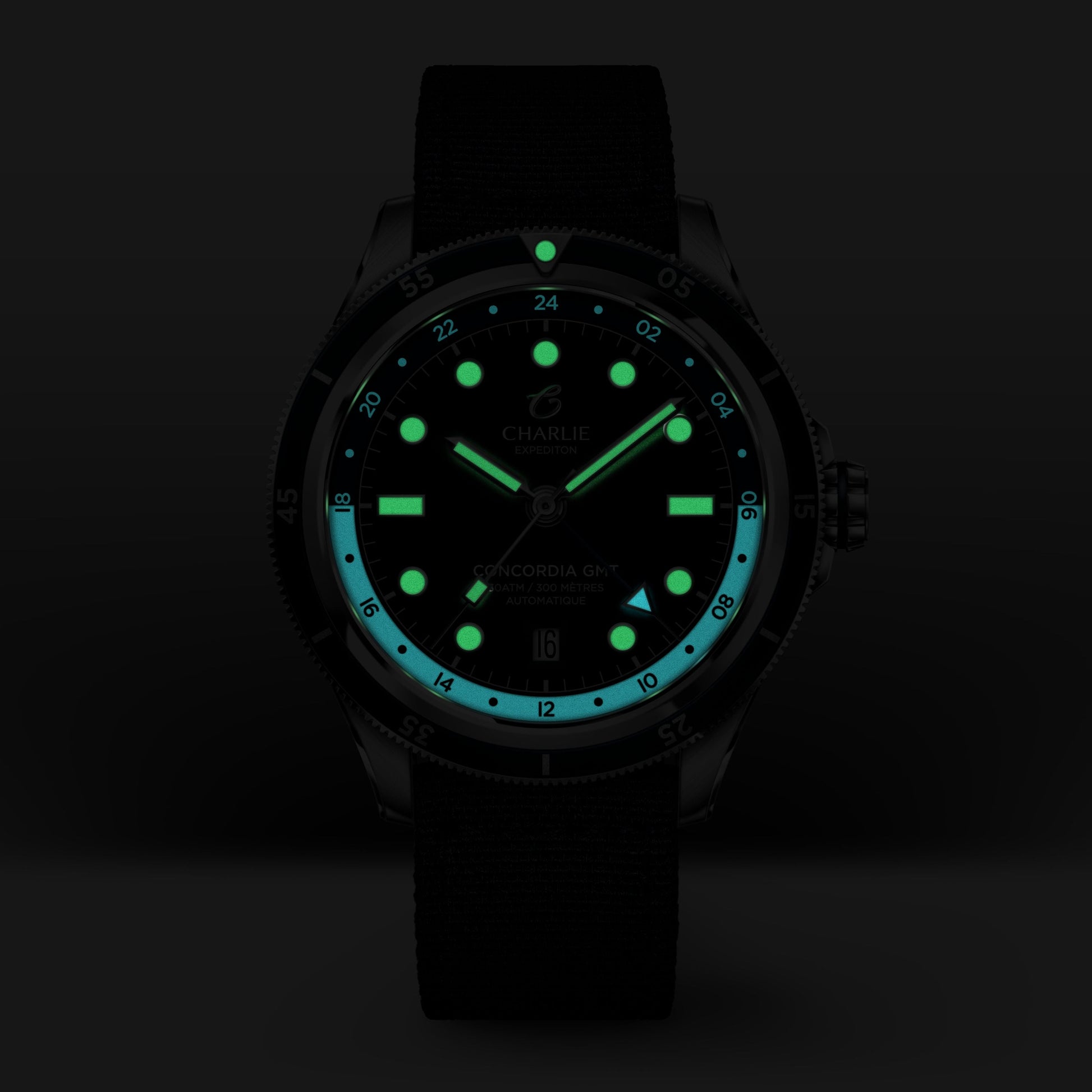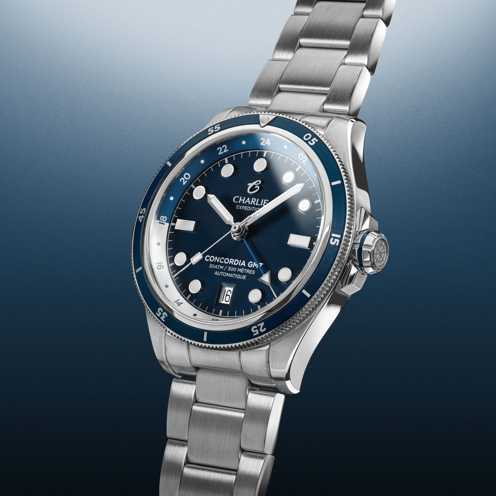 Avec son double fuseau horaire, la Concordia GMT s'impose comme une véritable "toolwatch" destinée aux aventuriers modernes voyageant à travers le monde. Dessinée et assemblée en France, équipée du calibre suisse Soprod C125, lisible dans l'obscurité et étanche à 300m, cette montre pour homme de 40mm de diamètre s’affirme comme un garde-temps sportif qui dessine un équilibre parfait entre force et raffinement.