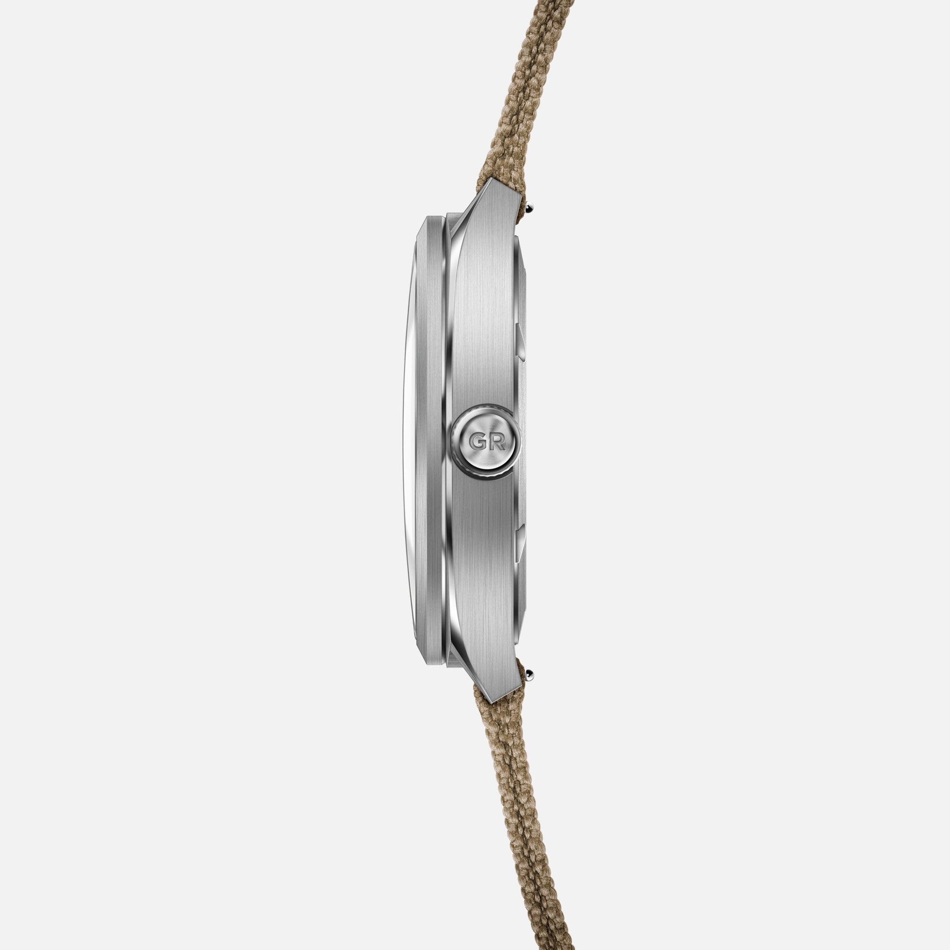 Dessinée et assemblée en France, étanche à 100m, et lisible dans l'obscurité, la GR est notre interprétation contemporaine de la "field watch", à la fois fiable, lisible et robuste. Cette montre pour homme, dotée d'un verre saphir légèrement bombé et d'un boitier de 39mm de diamètre, est équipée d'un mouvement quartz sweep second avec fonctions heure, minute, seconde et compteur des 24h. Portée sur un bracelet en acier, cuir ou nylon, cette montre au cadran beige est un instrument de précision qui vous permettra de conjuguer style et aventure.