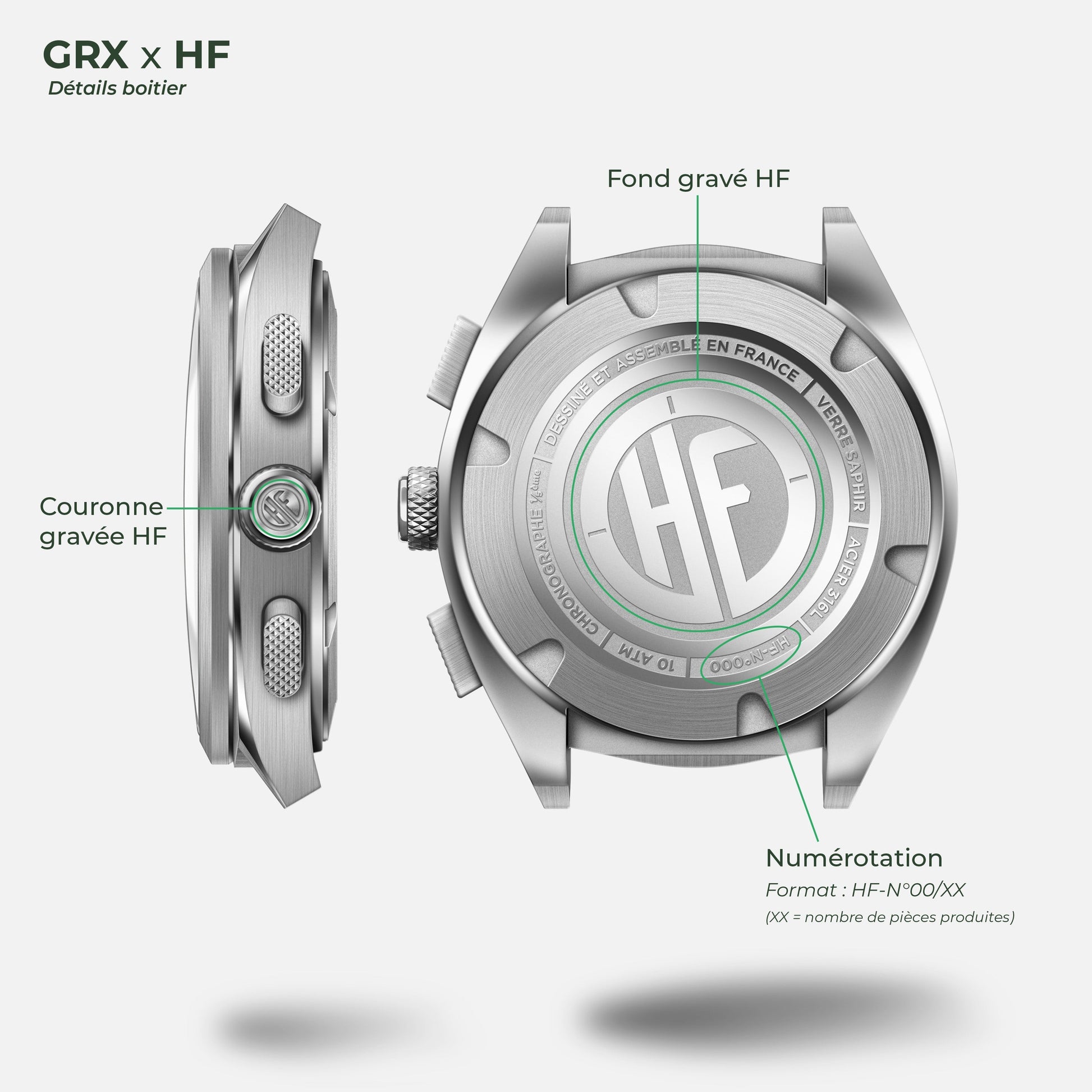 Série spéciale, déclinée de notre “GR“, dessinée en collaboration avec la communauté Horlogerie Francophone.
