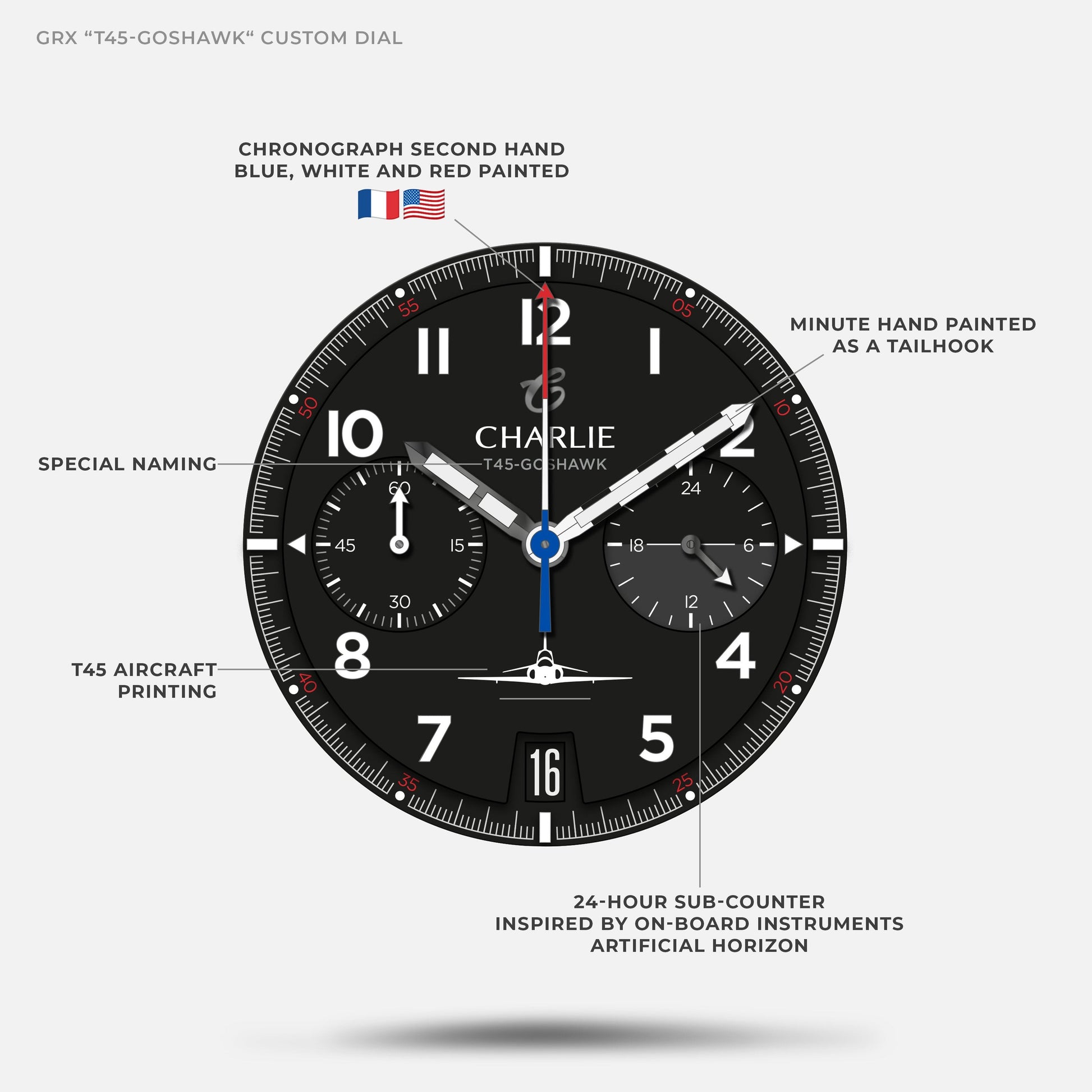 - Function: Hour, minute, 24h sub-dial, date + 60 minutes and seconds chronograph sub-counters