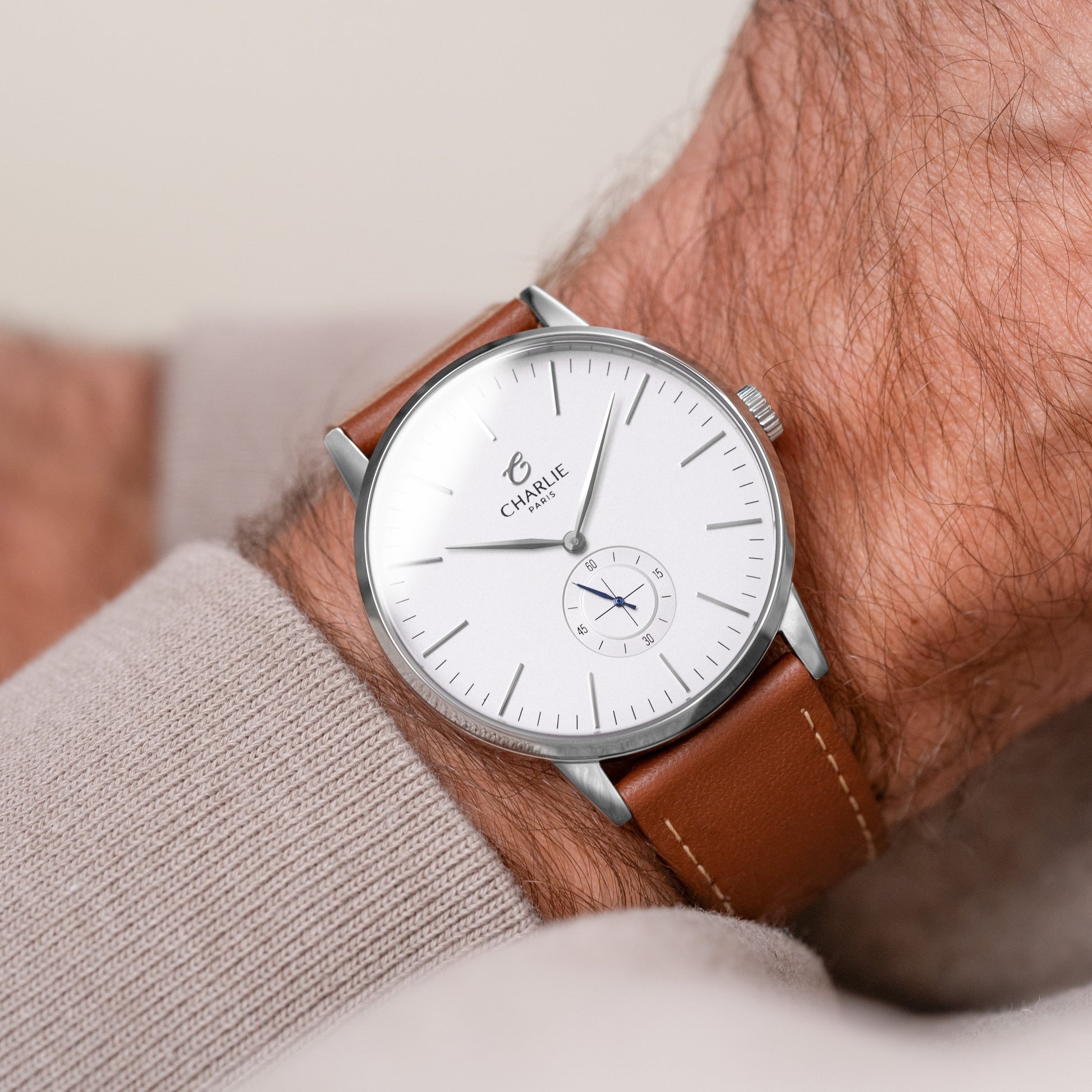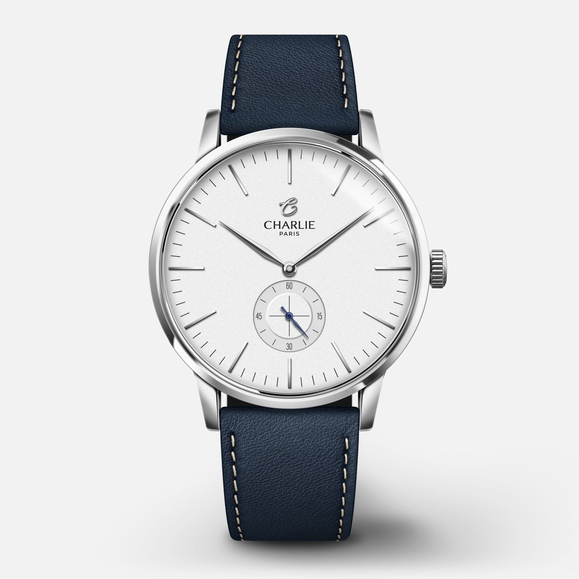 Dessinée et assemblée en France, la montre Horizon avec cadran blanc présente des lignes épurées, au design à la fois classique et contemporain. Cette montre quartz pour homme aux bracelets interchangeables sans outil et verre saphir est dotée d'un mouvement à pile parfaitement logé dans un boîtier en acier 316L de 39mm de diamètre.