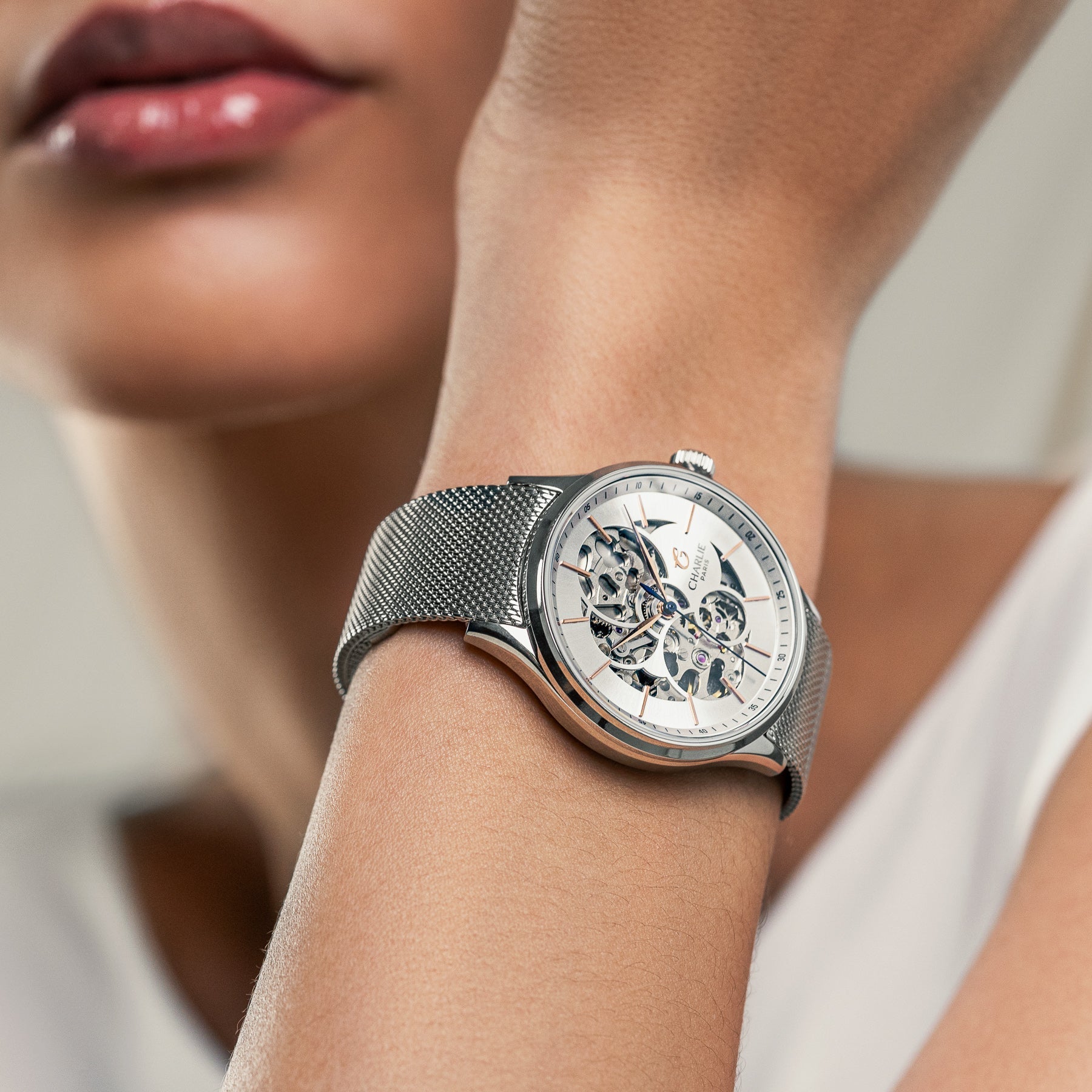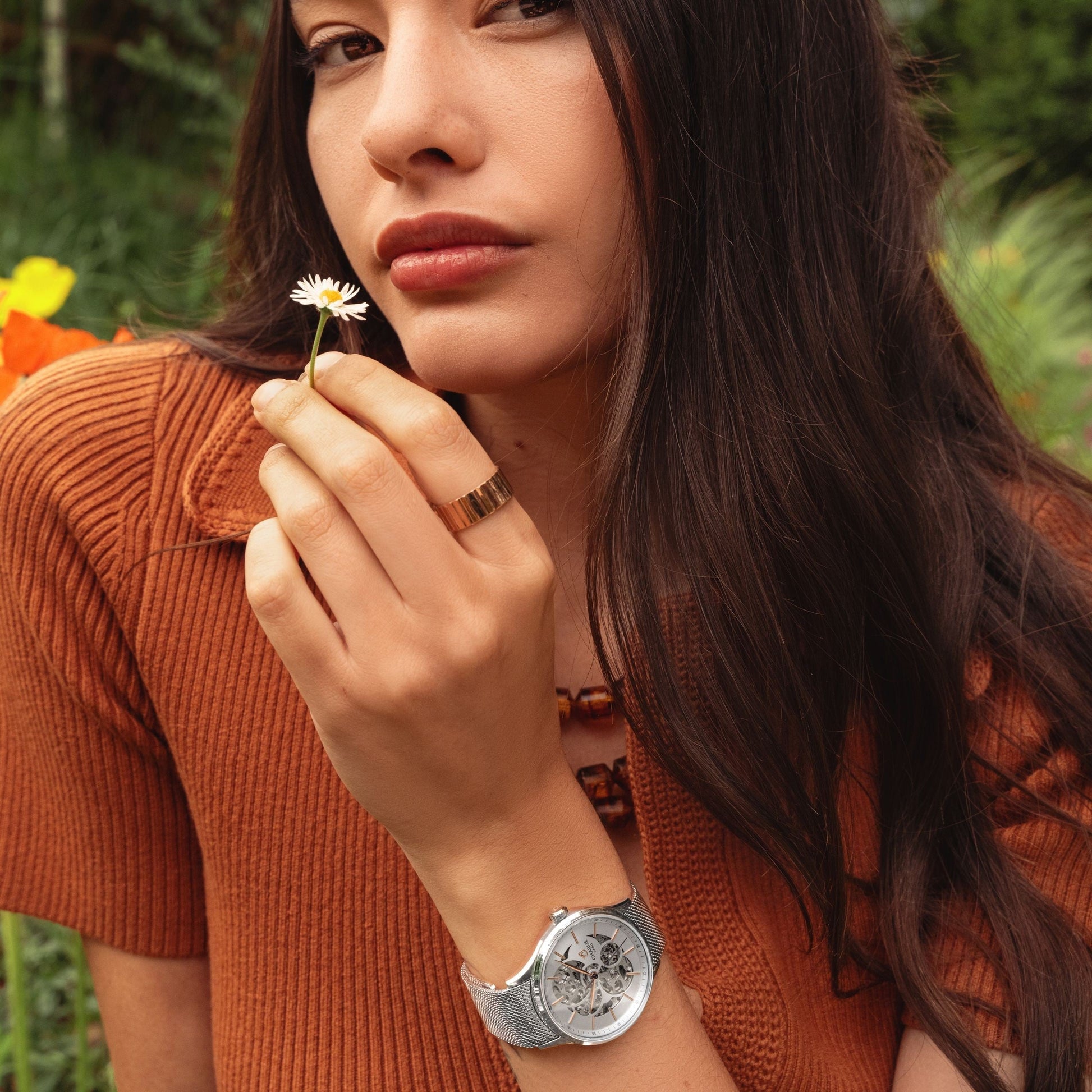 Dessinée et assemblée en France, l'Initial 36 Ajourée Acier présente des lignes épurées, au design à la fois classique et contemporain. Cette montre automatique pour femme laisse apparaître les rouages de son mouvement pour un équilibre parfait entre beauté intemporelle et mécanique horlogère. Avec son boîtier acier de 36mm de diamètre et ses bracelets interchangeables, elle saura vous accompagner pendant de nombreuses années.