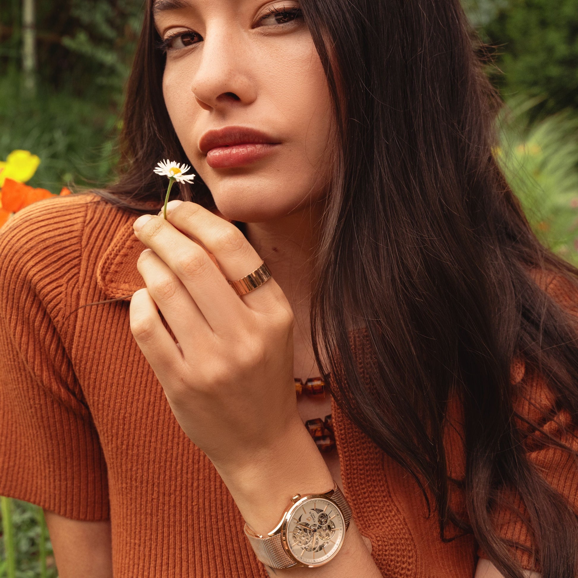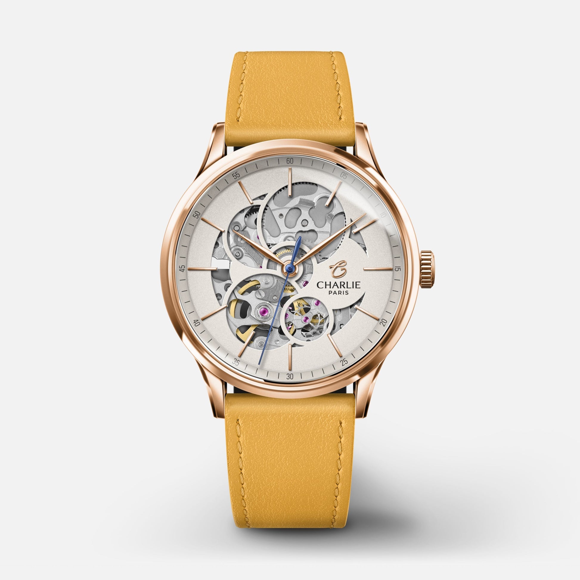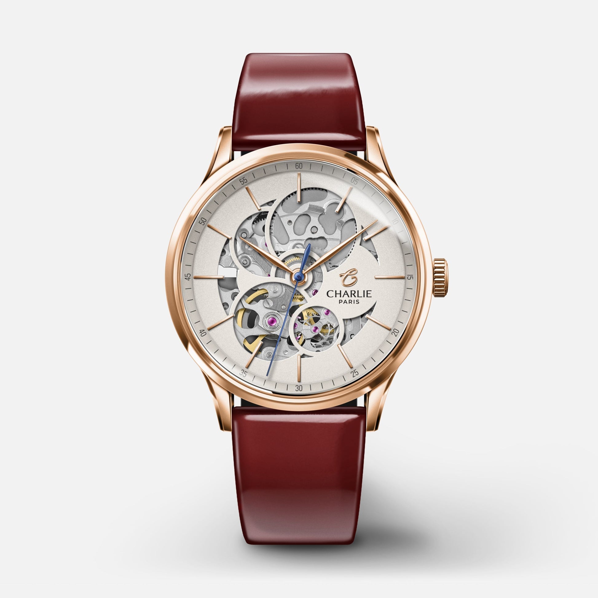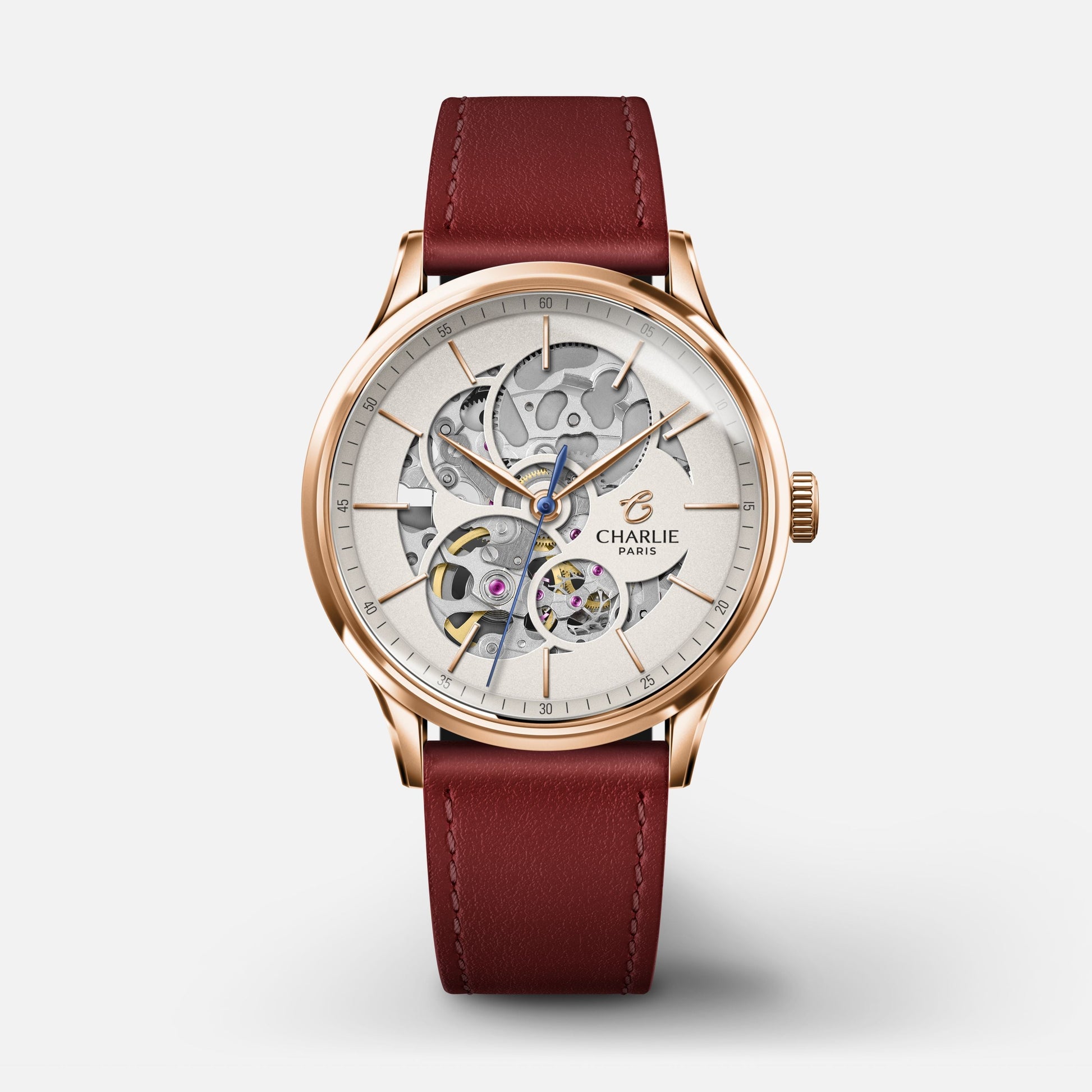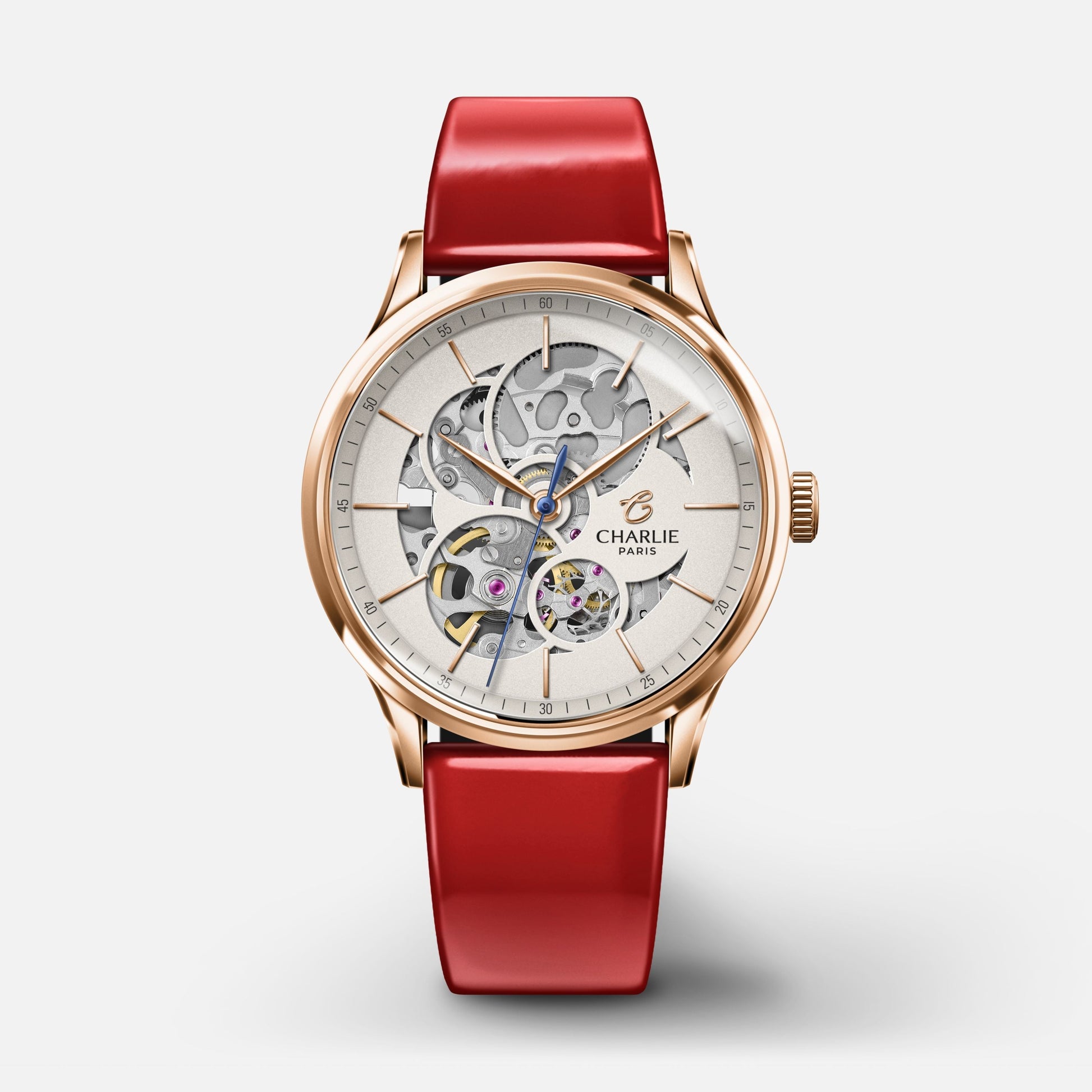 Dessinée et assemblée en France, l'Initial 36 Ajourée doré rose présente des lignes épurées, au design à la fois classique et contemporain. Cette montre automatique pour femme laisse apparaître les rouages de son mouvement pour un équilibre parfait entre beauté intemporelle et mécanique horlogère. Avec son boîtier rose doré de 36mm de diamètre et ses bracelets interchangeables, elle saura vous accompagner pendant de nombreuses années.