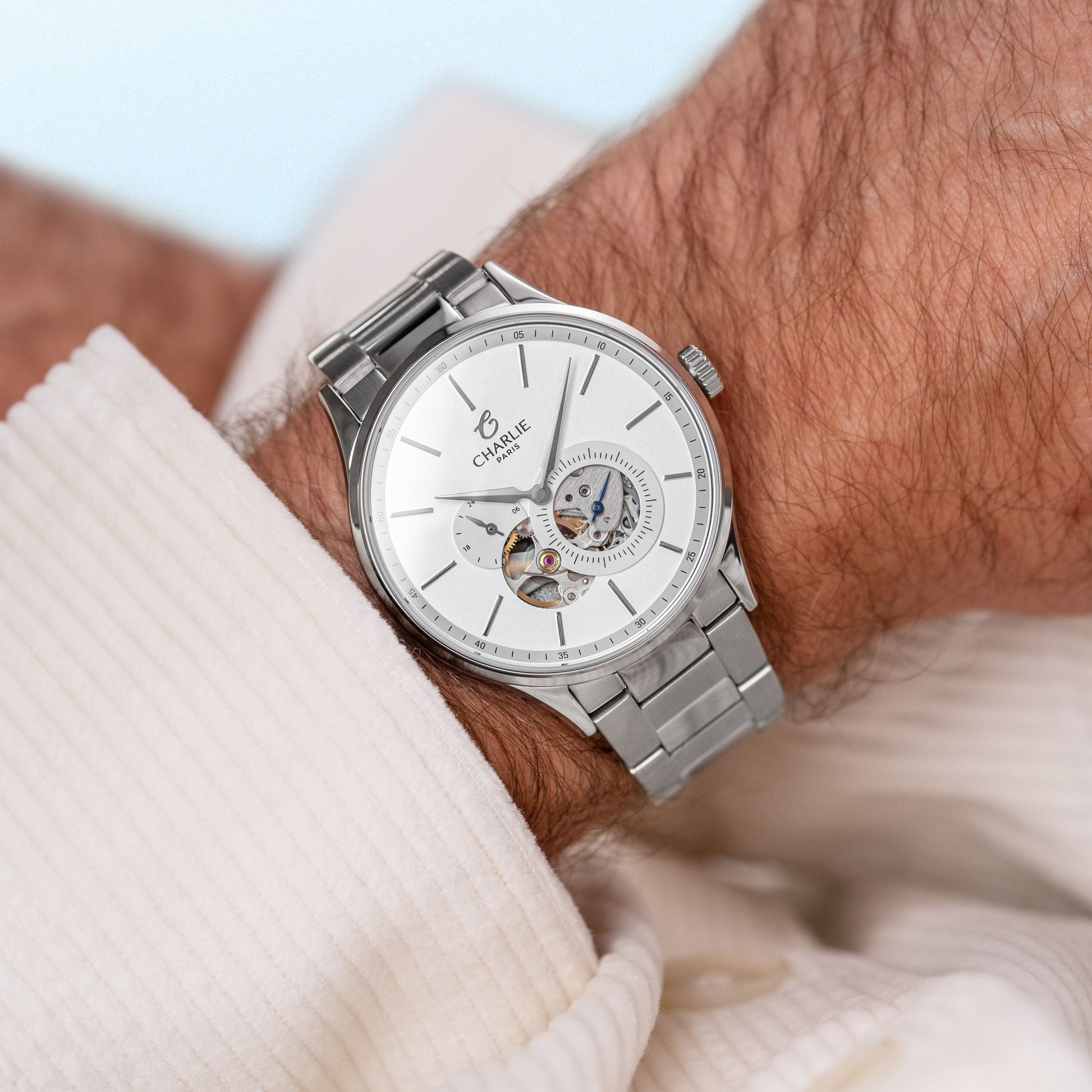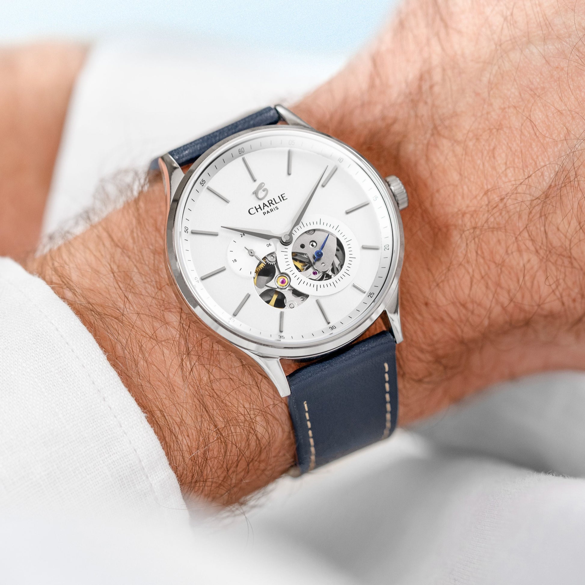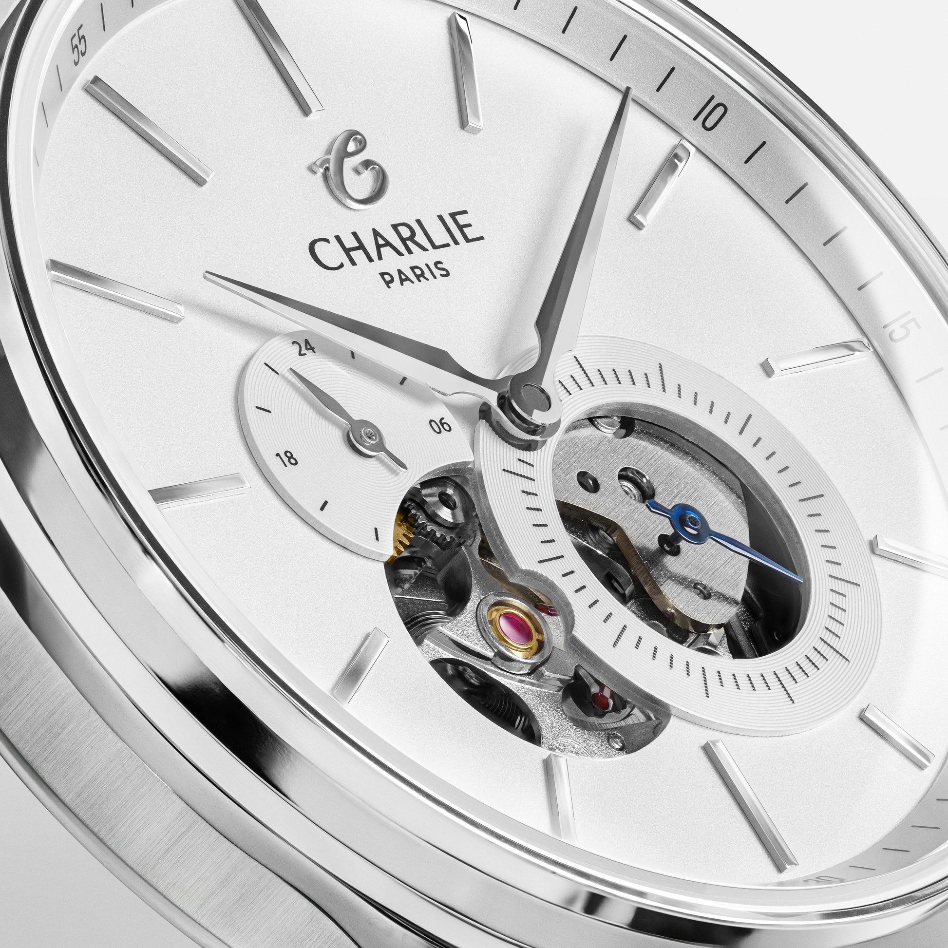 Dessinée et assemblée en France, l'Initial Cœur Ouvert cadran blanc présente des lignes épurées, au design à la fois classique et contemporain. Cette montre automatique pour homme laisse apparaître les rouages de son mouvement Citizen Miyota Calibre 82S7 pour un équilibre parfait entre beauté intemporelle et mécanique horlogère. Avec son boîtier en acier 316L de 40mm de diamètre, son verre saphir et ses bracelets interchangeables, elle saura vous accompagner pendant de nombreuses années.