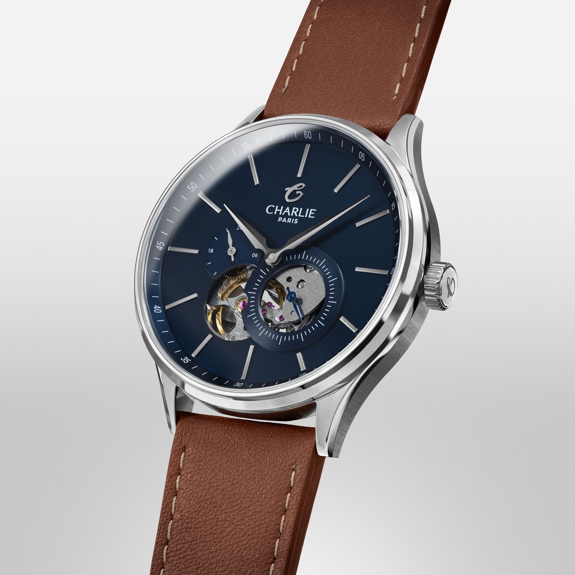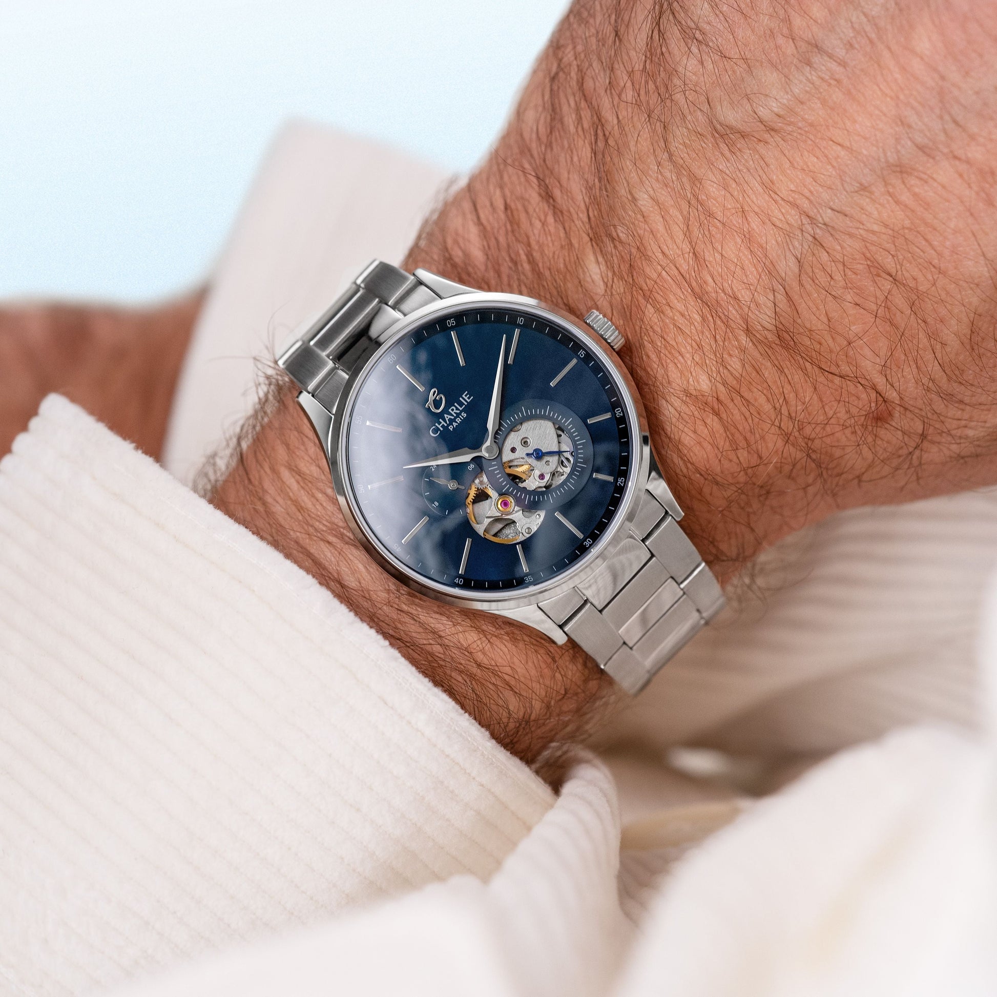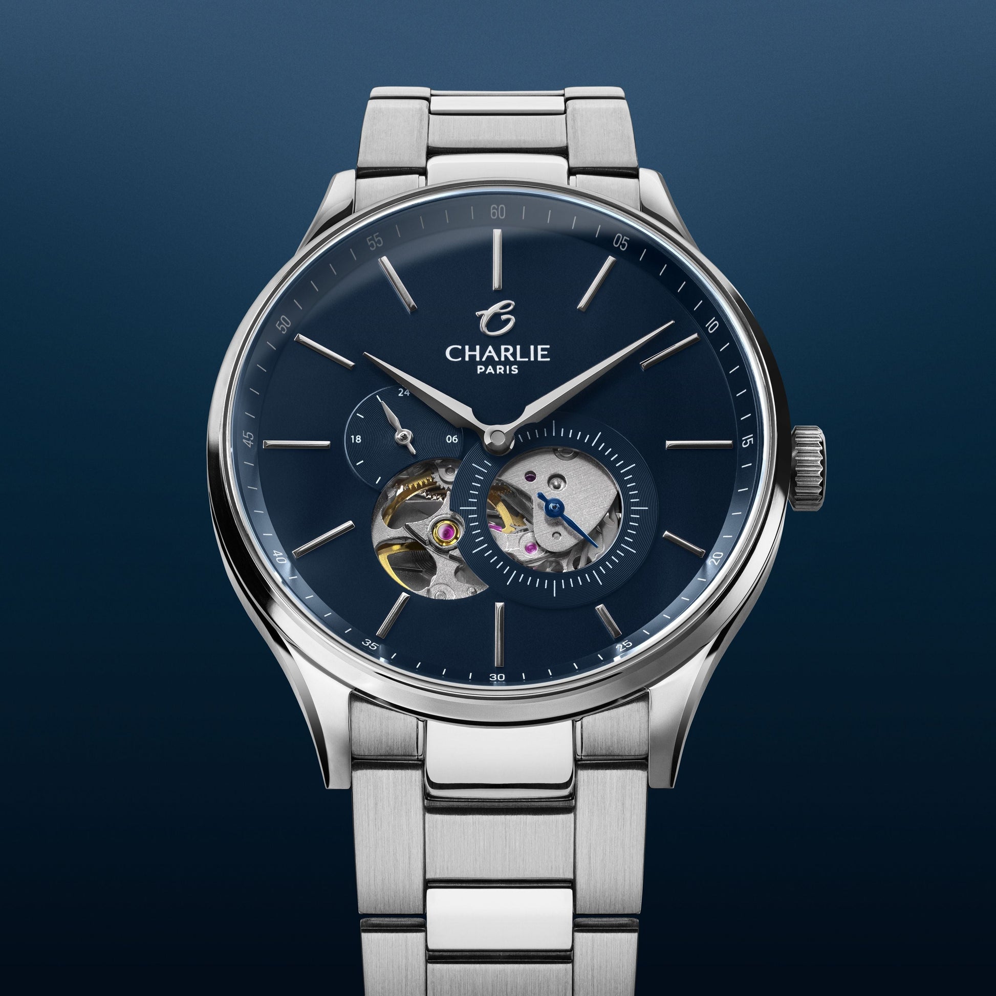 Dessinée et assemblée en France, l'Initial Cœur Ouvert cadran bleu présente des lignes épurées, au design à la fois classique et contemporain. Cette montre automatique pour homme laisse apparaître les rouages de son mouvement Citizen Miyota Calibre 82S7 pour un équilibre parfait entre beauté intemporelle et mécanique horlogère. Avec son boîtier en acier 316L de 40mm de diamètre, son verre saphir et ses bracelets interchangeables, elle saura vous accompagner pendant de nombreuses années.