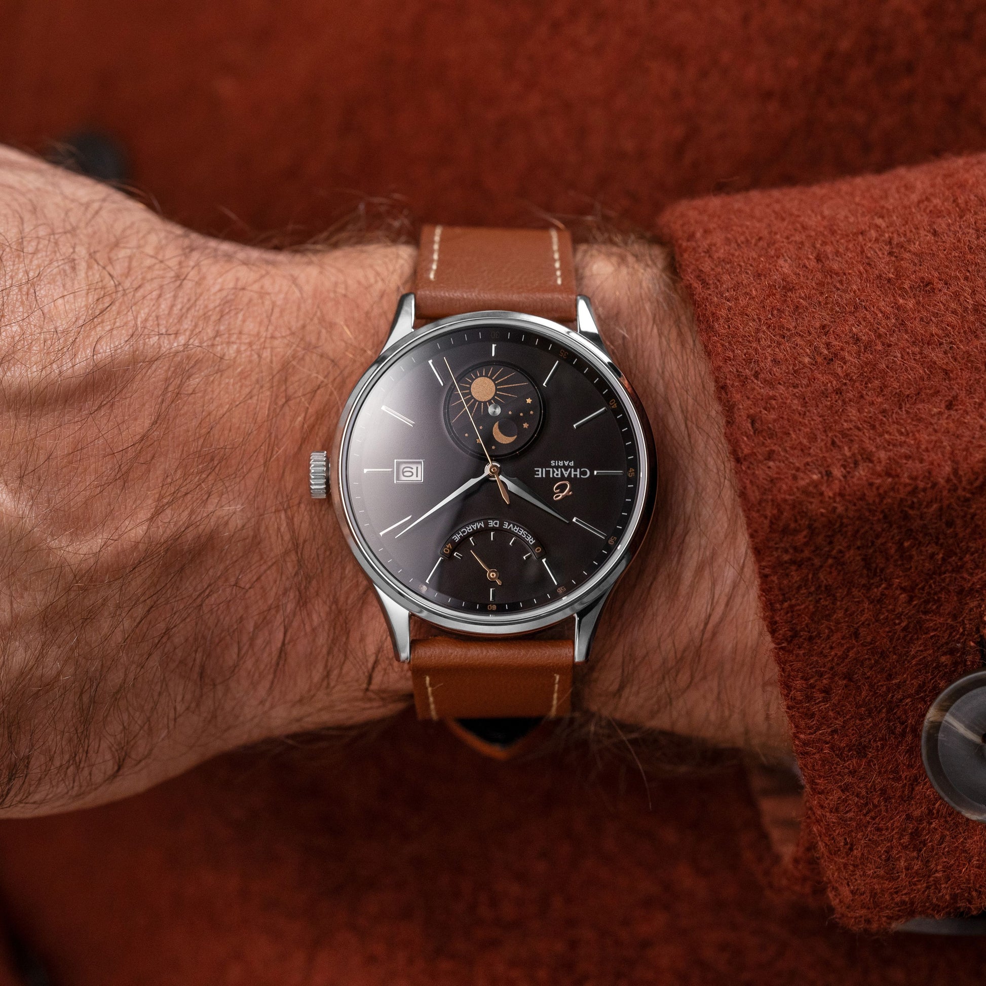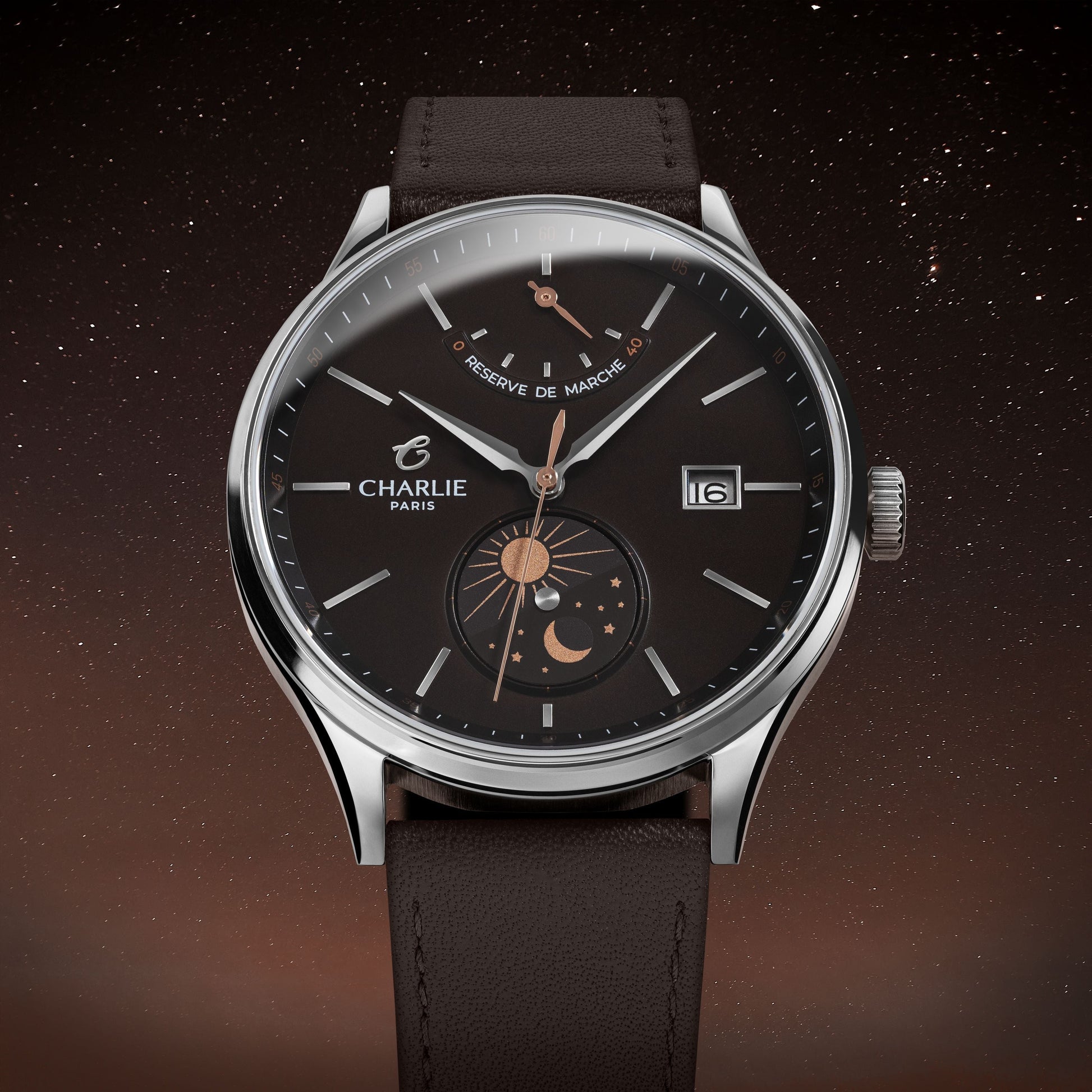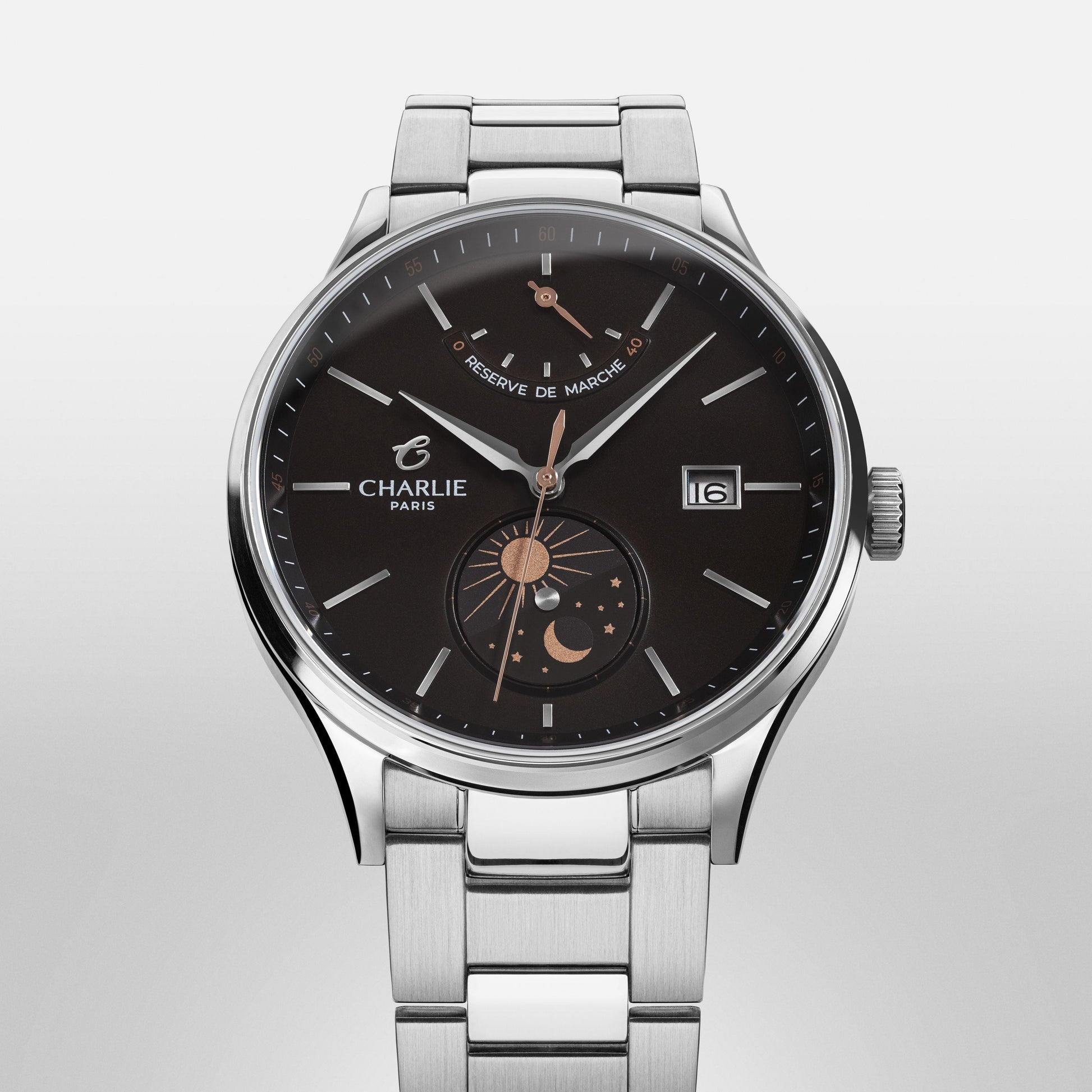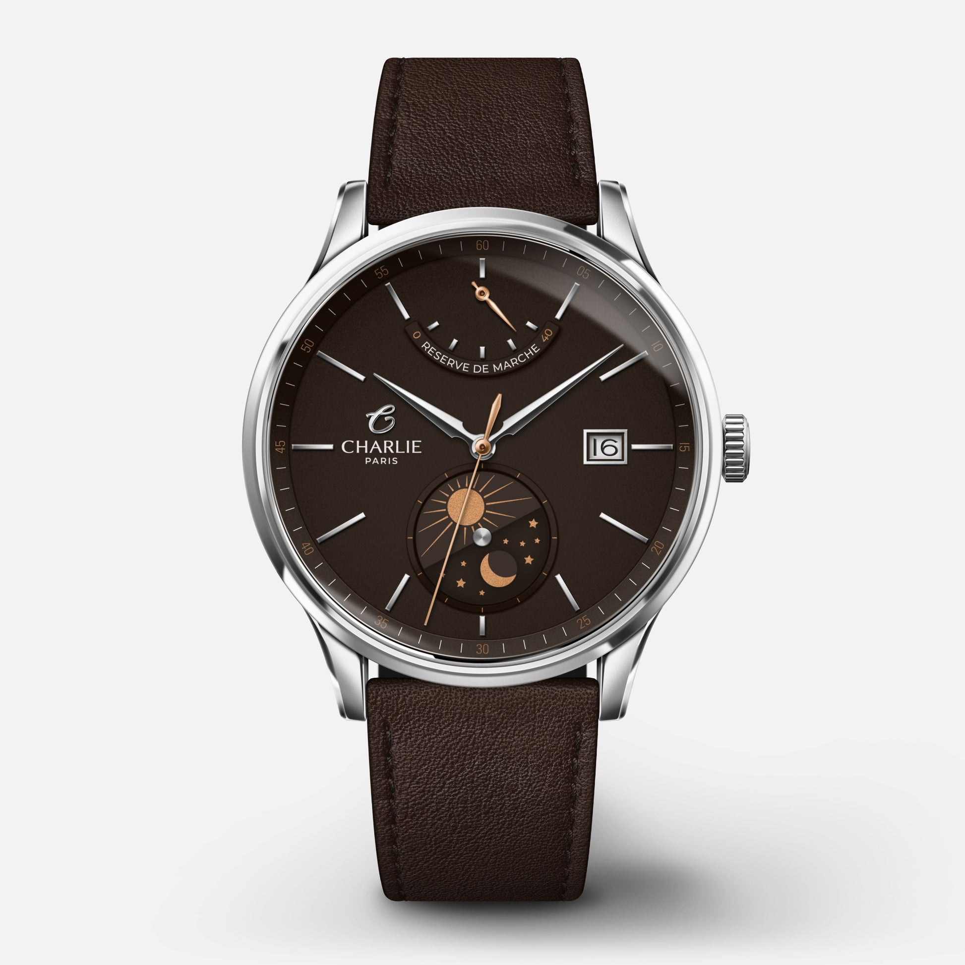 Dessinée et assemblée en France, l'Initial Réserve de Marche cadran brun présente des lignes épurées, au design à la fois classique et contemporain. Cette montre automatique pour homme est dotée des fonctions heure, minute, seconde, date, disque jour/nuit et indicateur de réserve de marche pour un équilibre parfait entre beauté intemporelle et mécanique horlogère. Avec son boîtier en acier 316L de 40mm de diamètre, son verre saphir et ses bracelets interchangeables, elle saura vous accompagner pendant de nombreuses années.