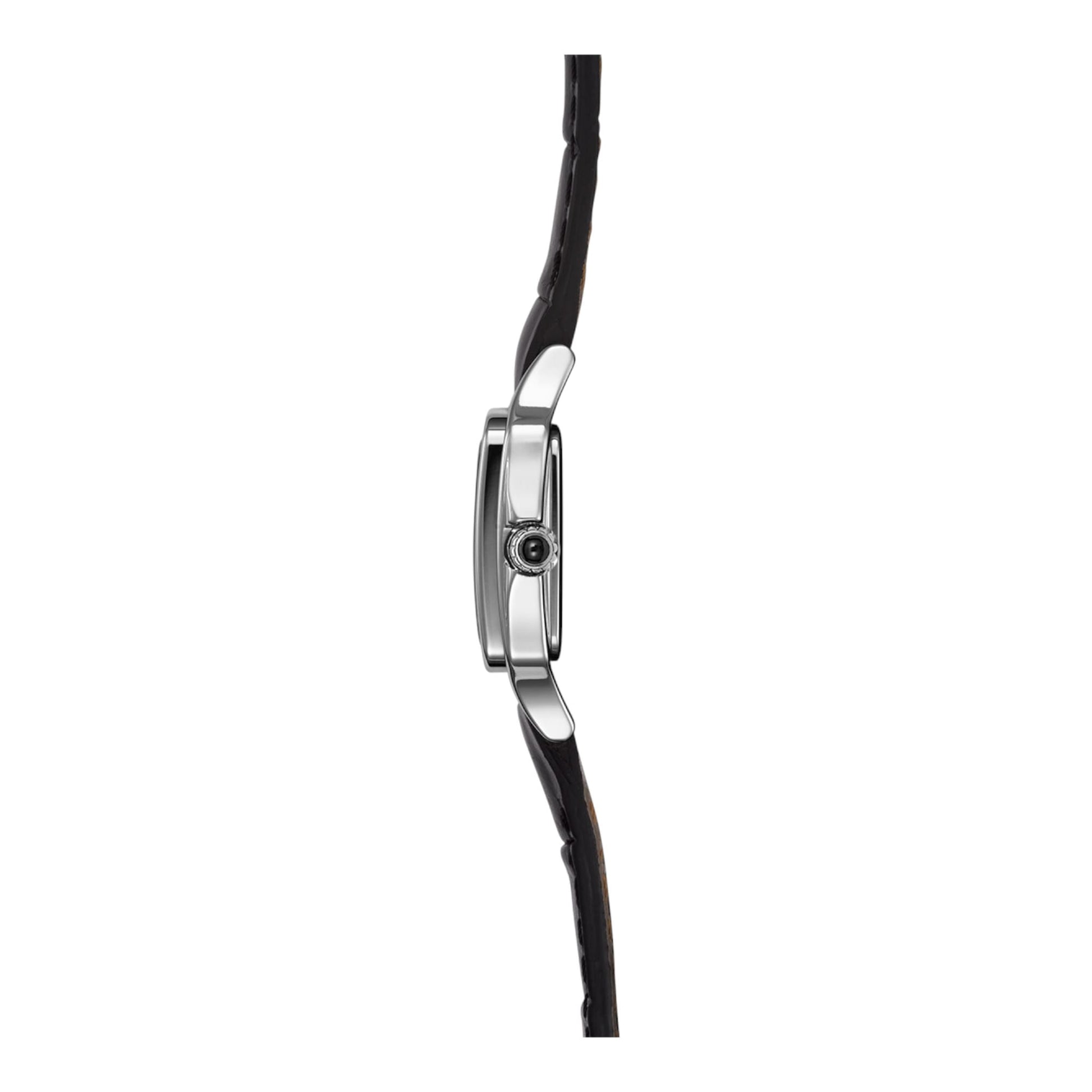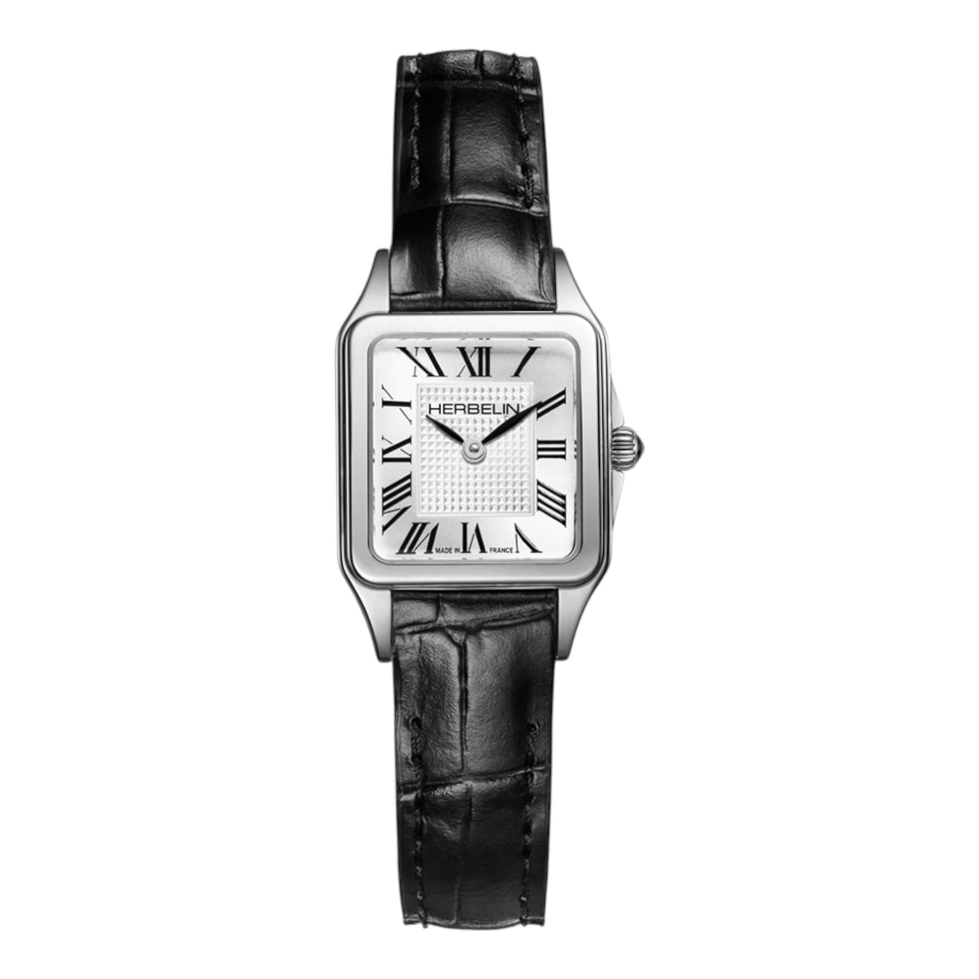 Herbelin LUNA Mini Quartz – L’élégance discrète au fémininLa montre Herbelin LUNA Mini Quartz Acier & Cuir Noir incarne l’essence même de la sophistication discrète. Pensée pour les femmes qui recherchent la subtilité dans le détail, elle allie le raffinement classique à une modernité intemporelle. Un design mini, une allure maxiSon boîtier rectangulaire en acier inoxydable, d’une finesse remarquable de 6,75 mm, abrite un cadran argenté aux finitions précieuses : un centre orné d’un motif guilloché clous de Paris et un pourtour aux reflets soleillés. Les chiffres romains finement dessinés et les aiguilles en forme de feuille soulignent le caractère délicatement classique de cette pièce horlogère. Fiabilité suisse et confort raffinéÉquipée d’un mouvement à quartz suisse, la Luna Mini garantit une précision fiable au quotidien. Son bracelet en cuir noir lisse, souple et élégant, épouse le poignet avec légèreté. Protégée par un verre saphir inrayable et dotée d’une étanchéité jusqu’à 50 mètres, elle conjugue esthétique, confort et durabilité. Une montre pour les femmes exigeantesIdéale pour les poignets fins, la Herbelin Luna Mini s’adresse à celles qui privilégient le style épuré et la qualité horlogère. Elle ne cherche pas à éblouir, mais à captiver par sa présence discrète et sa beauté subtile. Découvrez toute la collection LUNA sur Vogtime et explorez des modèles aussi raffinés qu’intemporels, créés pour celles qui vivent l’élégance avec naturel. |