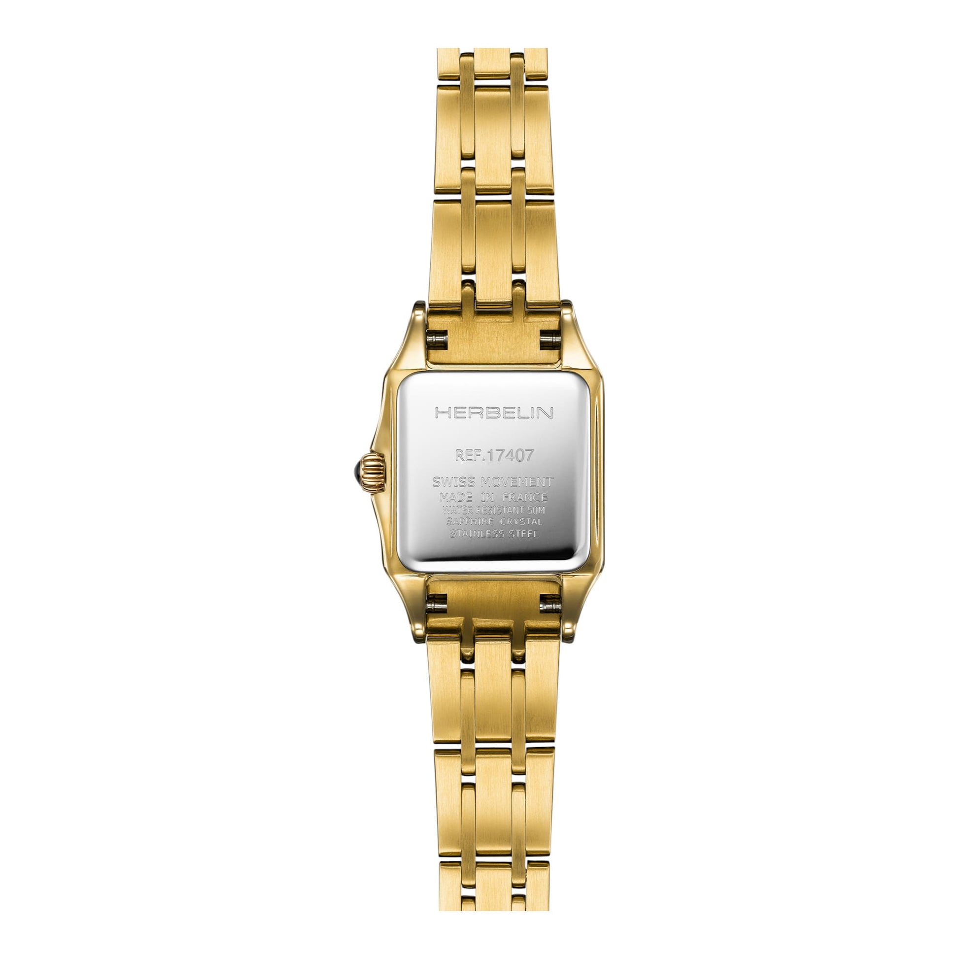 Herbelin LUNA Mini Quartz – L’élégance discrète au fémininLa montre Herbelin LUNA Mini Quartz Acier & Cuir Noir incarne l’essence même de la sophistication discrète. Pensée pour les femmes qui recherchent la subtilité dans le détail, elle allie le raffinement classique à une modernité intemporelle. Un design mini, une allure maxiSon boîtier rectangulaire en acier inoxydable, d’une finesse remarquable de 6,75 mm, abrite un cadran argenté aux finitions précieuses : un centre orné d’un motif guilloché clous de Paris et un pourtour aux reflets soleillés. Les chiffres romains finement dessinés et les aiguilles en forme de feuille soulignent le caractère délicatement classique de cette pièce horlogère. Fiabilité suisse et confort raffinéÉquipée d’un mouvement à quartz suisse, la Luna Mini garantit une précision fiable au quotidien. Son bracelet en cuir noir lisse, souple et élégant, épouse le poignet avec légèreté. Protégée par un verre saphir inrayable et dotée d’une étanchéité jusqu’à 50 mètres, elle conjugue esthétique, confort et durabilité. Une montre pour les femmes exigeantesIdéale pour les poignets fins, la Herbelin Luna Mini s’adresse à celles qui privilégient le style épuré et la qualité horlogère. Elle ne cherche pas à éblouir, mais à captiver par sa présence discrète et sa beauté subtile. Découvrez toute la collection LUNA sur Vogtime et explorez des modèles aussi raffinés qu’intemporels, créés pour celles qui vivent l’élégance avec naturel. |
