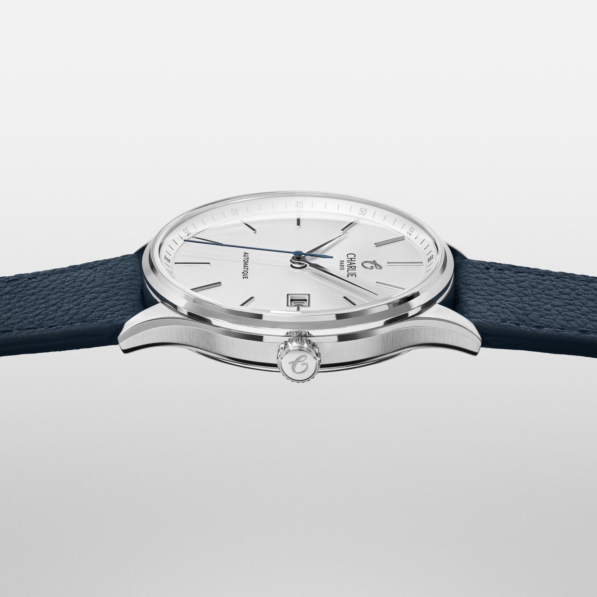 Dessinée et assemblée en France, l'Initial Slim cadran blanc présente des lignes épurées, au design à la fois classique et contemporain. Cette montre automatique pour homme au boîtier en acier 316L de 40mm de diamètre, verre saphir et bracelets interchangeables, saura vous accompagner pendant de nombreuses années.