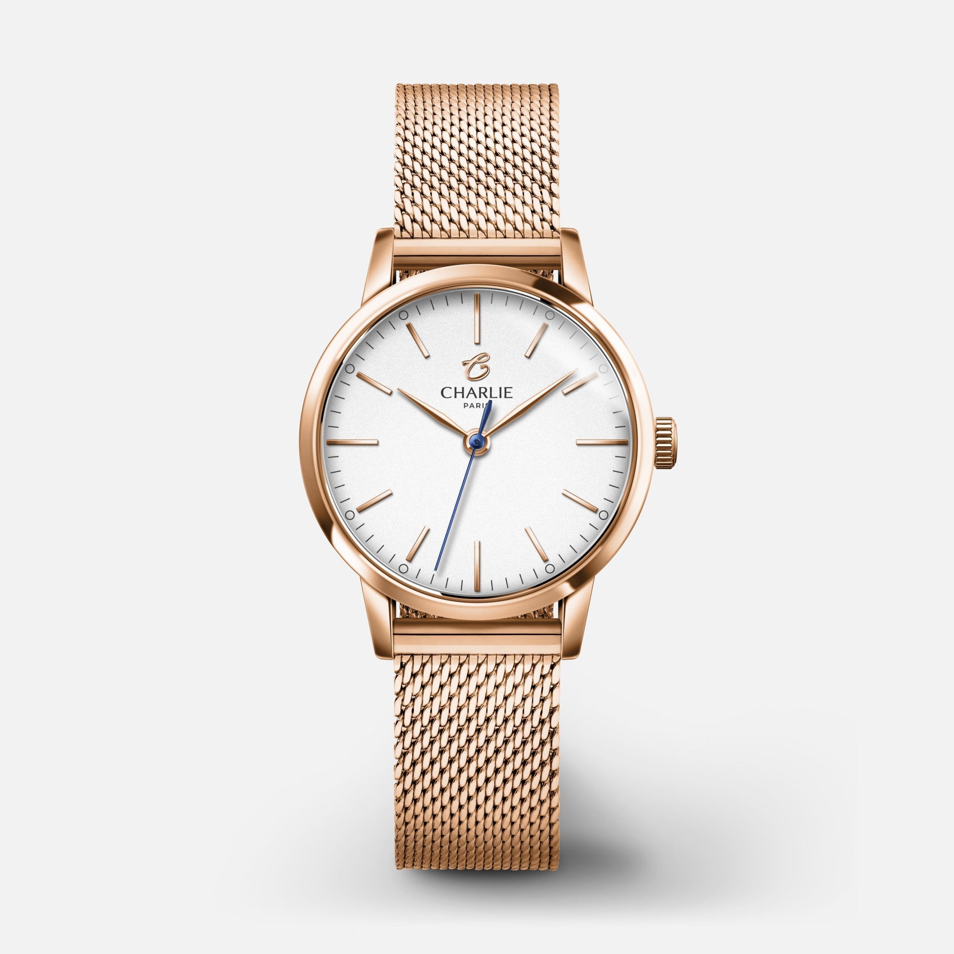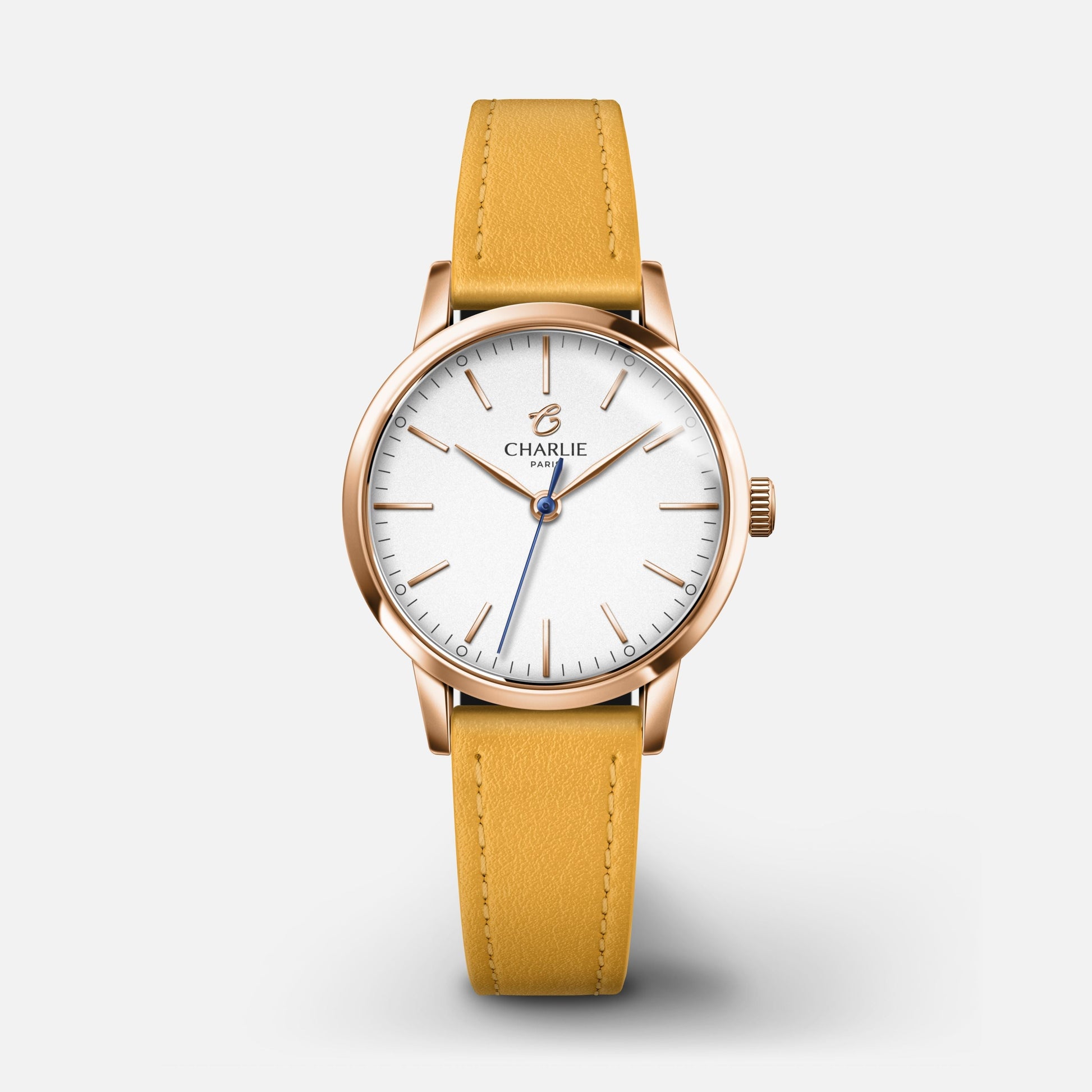 Dessinée et assemblée en France, la Sully Dorée Rose présente des lignes épurées, au design à la fois classique et contemporain. Cette montre femme aux bracelets interchangeables est dotée d'un mouvement à quartz parfaitement logé dans un boîtier de 30mm de diamètre d’une grande finesse.