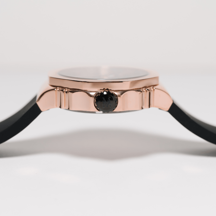 Le boîtier de 43x48 mm est conçu pour offrir une excellente lisibilité tout en étant suffisamment robuste pour supporter une utilisation quotidienne. Le bracelet en silicone noir ajoute du confort et de la flexibilité, faisant de cette montre un choix idéal pour une utilisation active, tout en restant élégante et tendance.