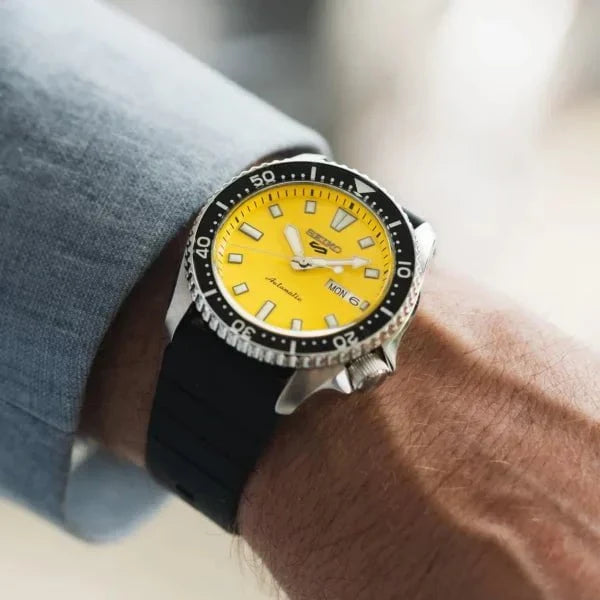 La Montre SEIKO 5 Homme Sports SRPL87K1 allie audace et performance avec son cadran jaune éclatant et son boîtier de 42,5 mm. Son mouvement quartz calibre 4R36 assure une précision fiable, tandis que le verre minéral protège votre style. Le bracelet en silicone noir offre un confort sportif, idéal pour toutes vos escapades. Étanche jusqu’à 10 ATM, elle vous accompagne sans souci, même sous l’eau. Avec 2 ans de garantie, cette montre est le choix parfait pour un look dynamique et plein de caractère !