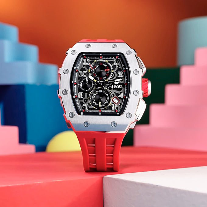 Apportez du peps à votre style avec la Montre TSAR BOMBA Homme Elemental Chronographe TB8204Q33 ! Son mouvement quartz fiable et son verre saphir ultra-résistant garantissent précision et robustesse. Le cadran noir chic contraste parfaitement avec le bracelet silicone rouge vif, pour un look à la fois sportif et audacieux. Étanche jusqu’à 5 ATM, elle vous accompagne sans souci dans toutes vos aventures. Avec son chronographe intégré, mesurez vos exploits en toute simplicité. Garantie 2 ans, cette montre est prête à booster votre quotidien avec énergie et style !