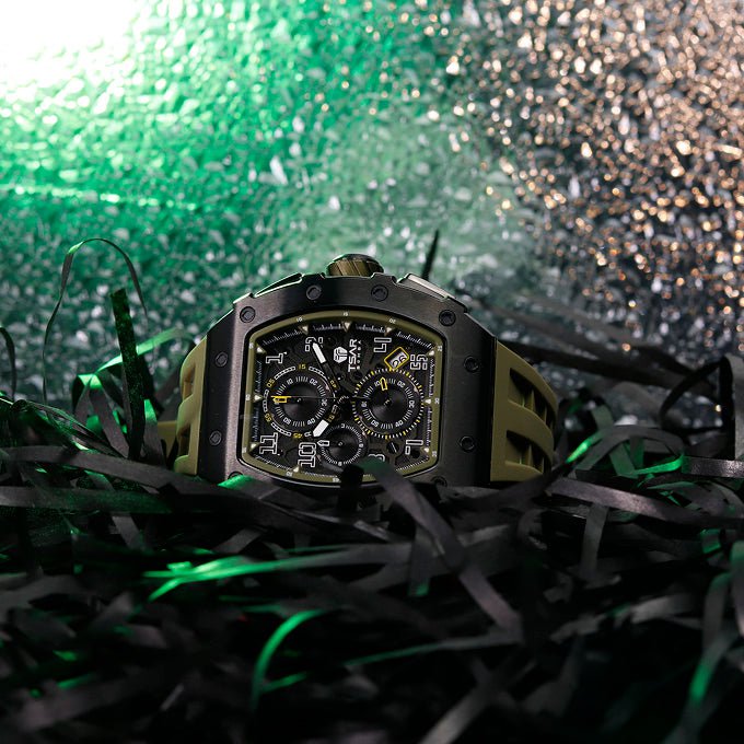 Boutons poussoir texturés, lunette biseautée et vis apparentes rappellent l’inspiration « sports mécaniques » de la collection Elemental. Chaque montre est livrée dans son écrin rembourré et bénéficie d’une garantie internationale de deux ans, gage de sérénité au quotidien.