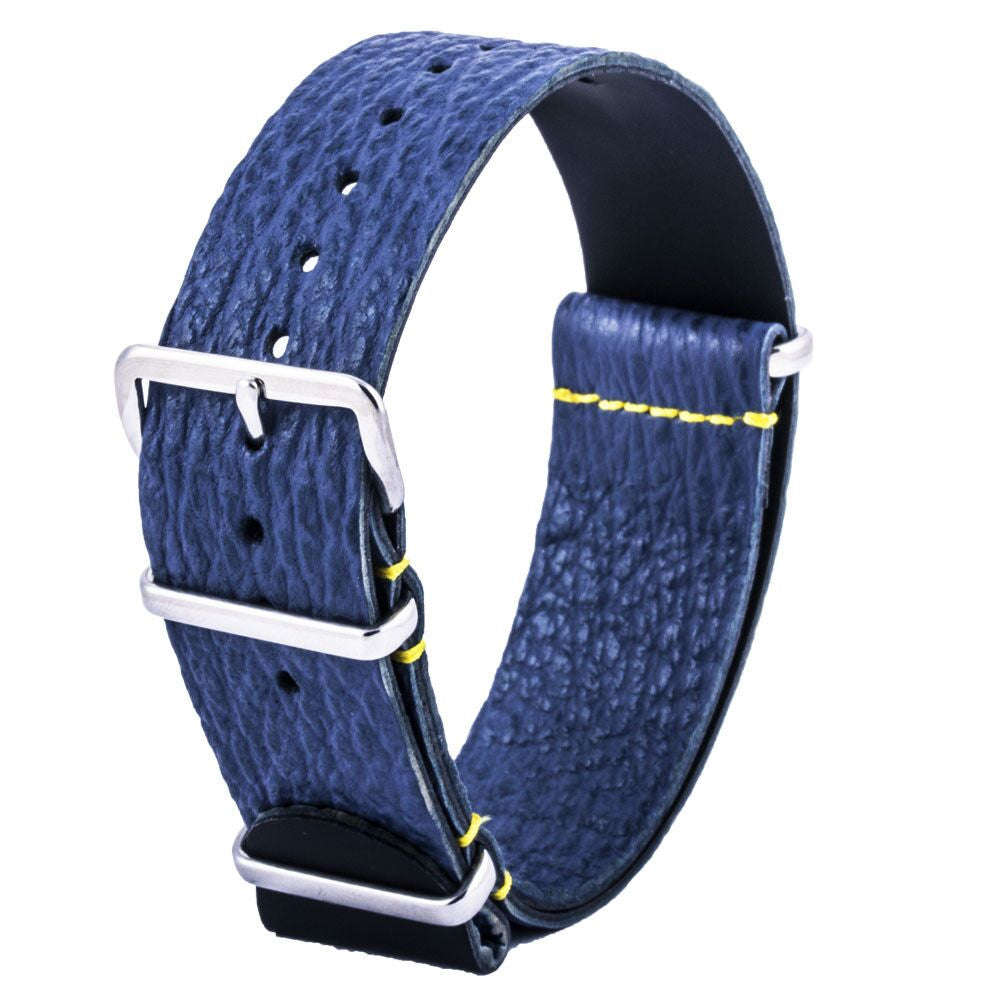 Omega Seamaster - Bracelet montre nato cuir qualité premium - Requin bleu