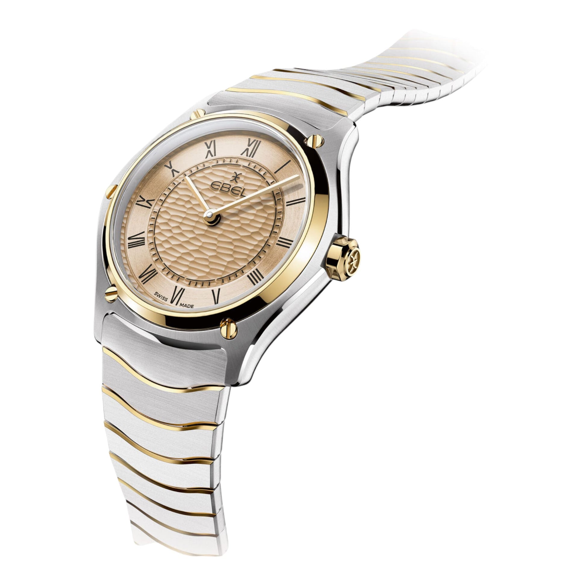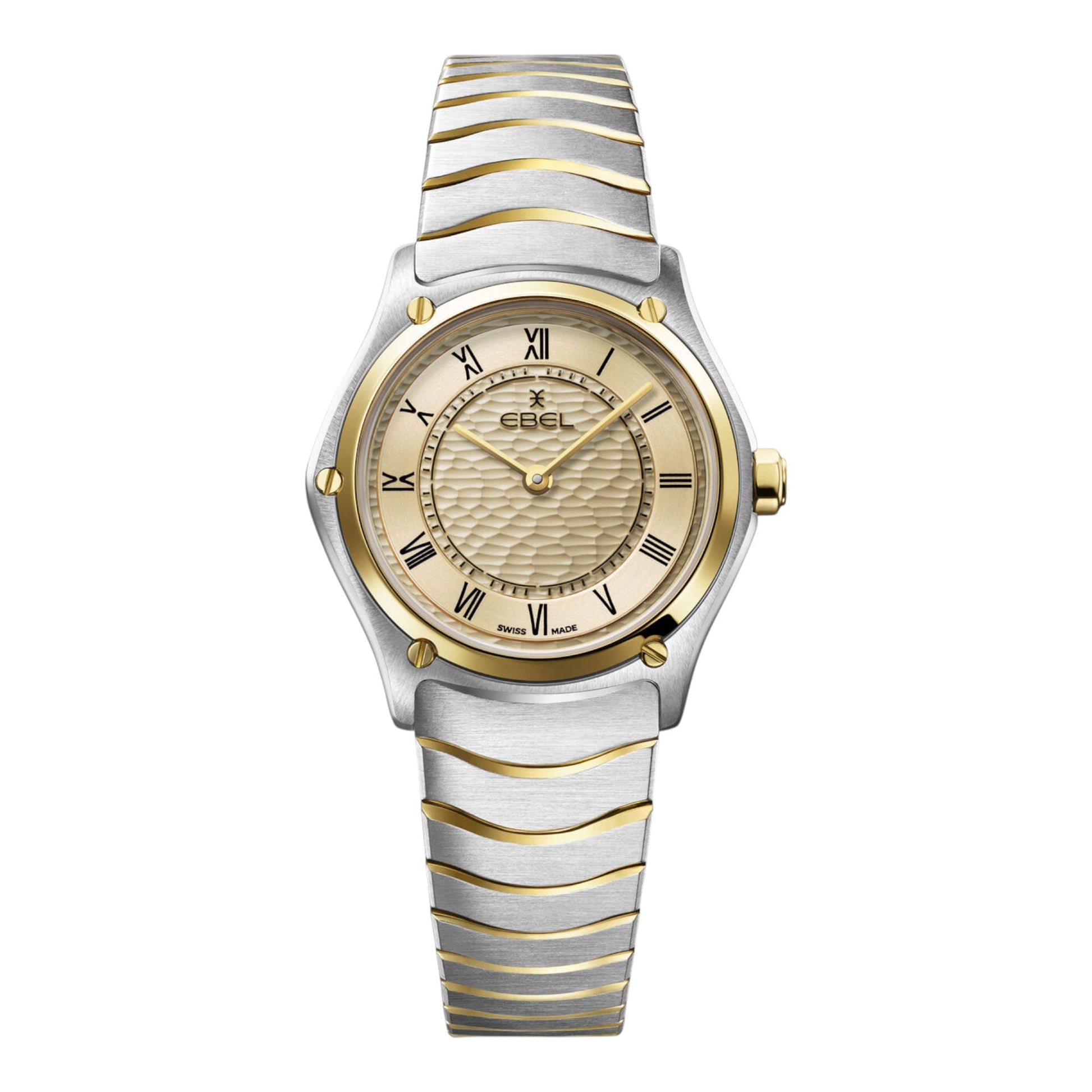 Découvrez la montre femme EBEL Sport Classic, un modèle élégant avec boîtier en acier inoxydable et or jaune 18K, Ø 29mm. Cadran beige clair avec chiffres romains noirs, bracelet à maillons ondulés bicolores et mouvement quartz suisse. Étanchéité jusqu’à 5 bar. • Boîtier : Acier inoxydable et or jaune 18K, diamètre de 29mm. La montre femme EBEL Sport Classic est un chef-d’œuvre d’élégance et de sophistication. Avec son boîtier en acier inoxydable et or jaune 18K de 29mm de diamètre, elle allie la robustesse de l’acier à la luxueuse chaleur de l’or. Le cadran beige clair est orné de chiffres romains gravés et peints en noir, ajoutant une touche classique et intemporelle à l’ensemble. Le motif texturé en vagues sur le cadran apporte une dimension supplémentaire à son design. Le bracelet en acier inoxydable bicolore à maillons ondulés est à la fois élégant et confortable, complété par un fermoir à clip pour une sécurité optimale. Le cristal de saphir avec traitement antireflet sous-jacent assure une lisibilité parfaite en toutes circonstances. Propulsée par un mouvement quartz suisse, cette montre garantit une précision sans faille. De plus, son étanchéité jusqu’à 5 bar la rend idéale pour une utilisation quotidienne, y compris lors de vos activités aquatiques. •Élégance : Design sophistiqué avec boîtier en acier inoxydable et or jaune 18K. La montre EBEL Sport Classic est le compagnon idéal pour la femme moderne qui recherche une touche d’élégance dans son quotidien. Que vous soyez au bureau, en soirée ou en promenade, cette montre ajoutera une note de sophistication à toutes vos tenues. |