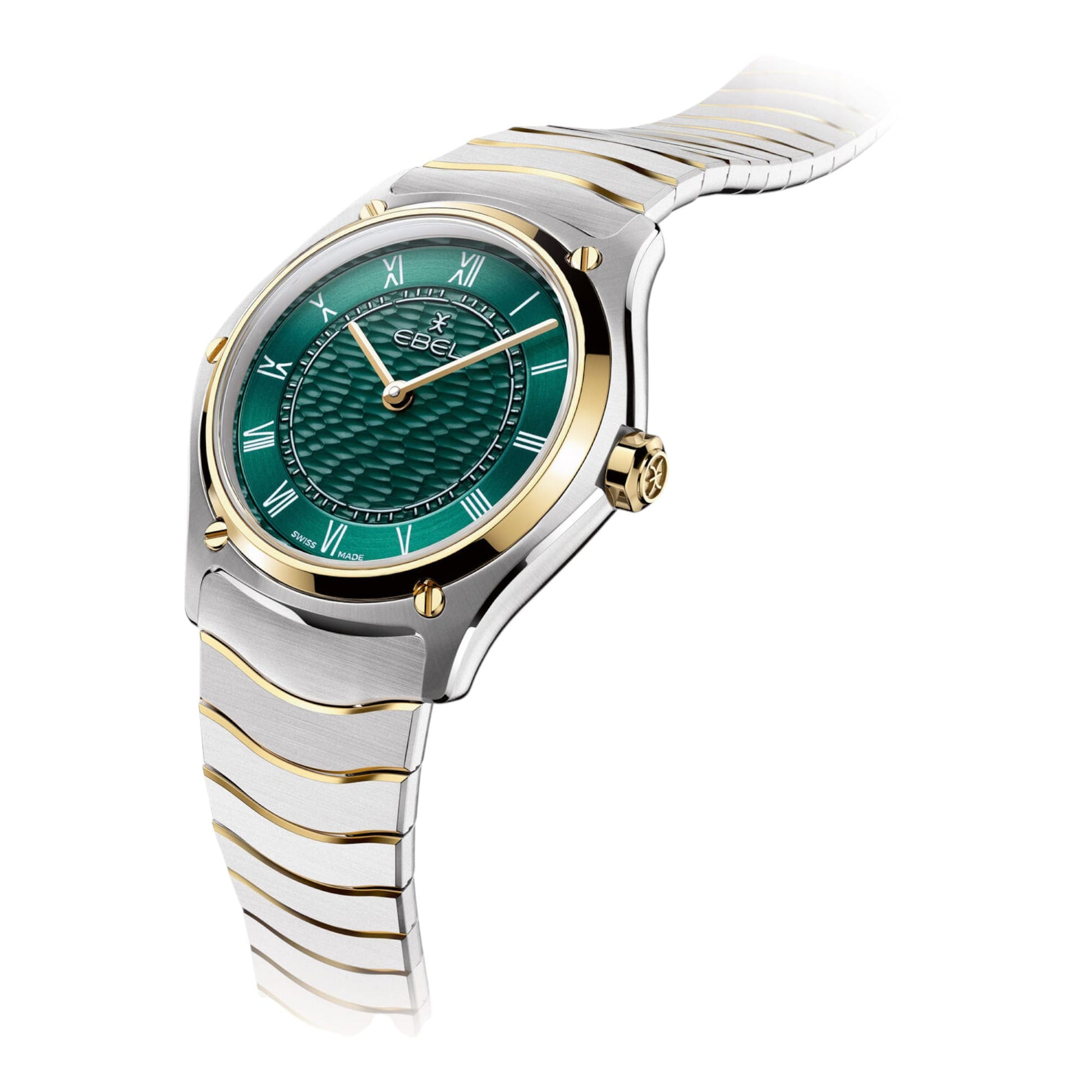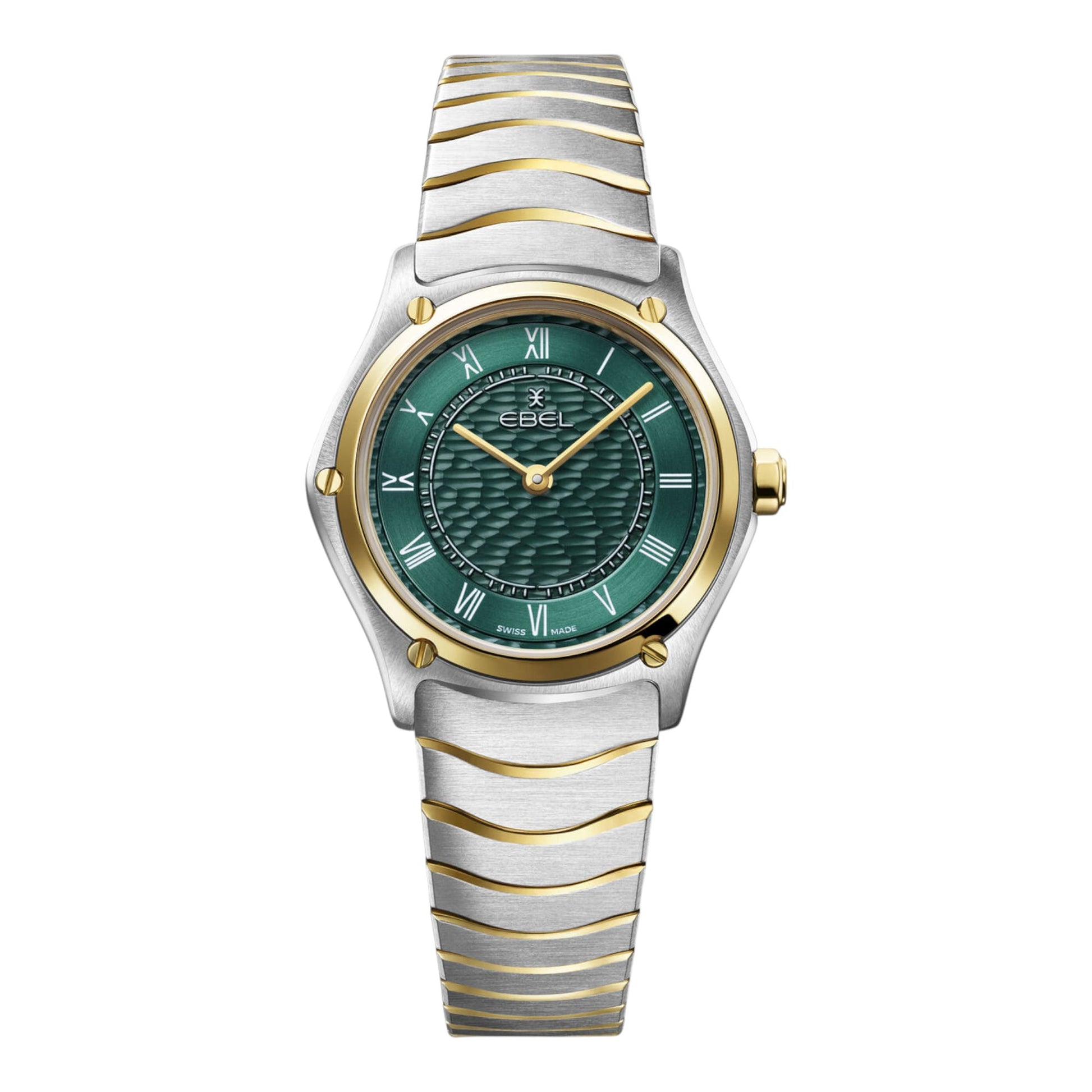 Découvrez la montre femme EBEL Sport Classic, un modèle élégant avec boîtier en acier inoxydable et or jaune 18K, Ø 29mm. Cadran vert avec chiffres romains noirs, bracelet à maillons ondulés bicolores et mouvement quartz suisse. Étanchéité jusqu’à 5 bar. • Boîtier : Acier inoxydable et or jaune 18K, diamètre de 29mm. La montre femme EBEL Sport Classic est un chef-d’œuvre d’élégance et de sophistication. Avec son boîtier en acier inoxydable et or jaune 18K de 29mm de diamètre, elle allie la robustesse de l’acier à la luxueuse chaleur de l’or. Le cadran vert est orné de chiffres romains gravés et peints en noir, ajoutant une touche classique et intemporelle à l’ensemble. Le motif texturé en vagues sur le cadran apporte une dimension supplémentaire à son design. Le bracelet en acier inoxydable bicolore à maillons ondulés est à la fois élégant et confortable, complété par un fermoir à clip pour une sécurité optimale. Le cristal de saphir avec traitement antireflet sous-jacent assure une lisibilité parfaite en toutes circonstances. Propulsée par un mouvement quartz suisse, cette montre garantit une précision sans faille. De plus, son étanchéité jusqu’à 5 bar la rend idéale pour une utilisation quotidienne, y compris lors de vos activités aquatiques. •Élégance : Design sophistiqué avec boîtier en acier inoxydable et or jaune 18K. La montre EBEL Sport Classic est le compagnon idéal pour la femme moderne qui recherche une touche d’élégance dans son quotidien. Que vous soyez au bureau, en soirée ou en promenade, cette montre ajoutera une note de sophistication à toutes vos tenues. |