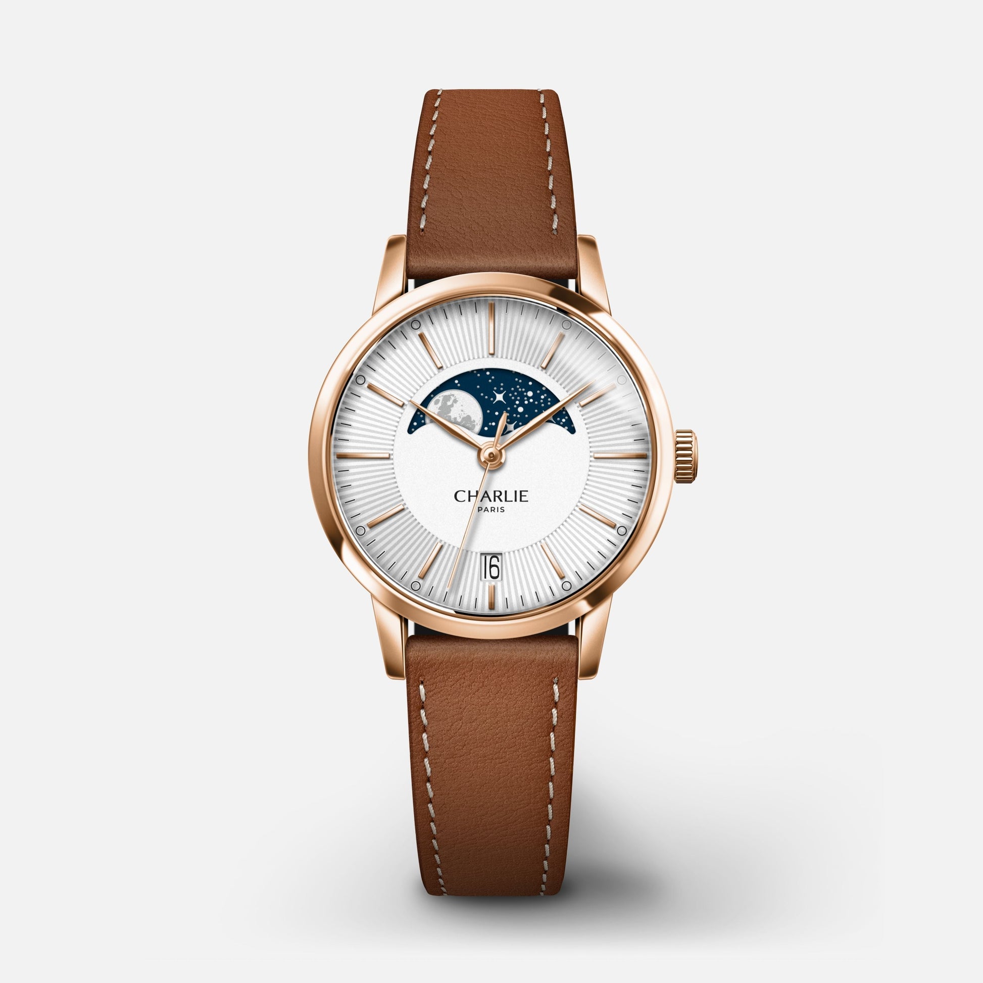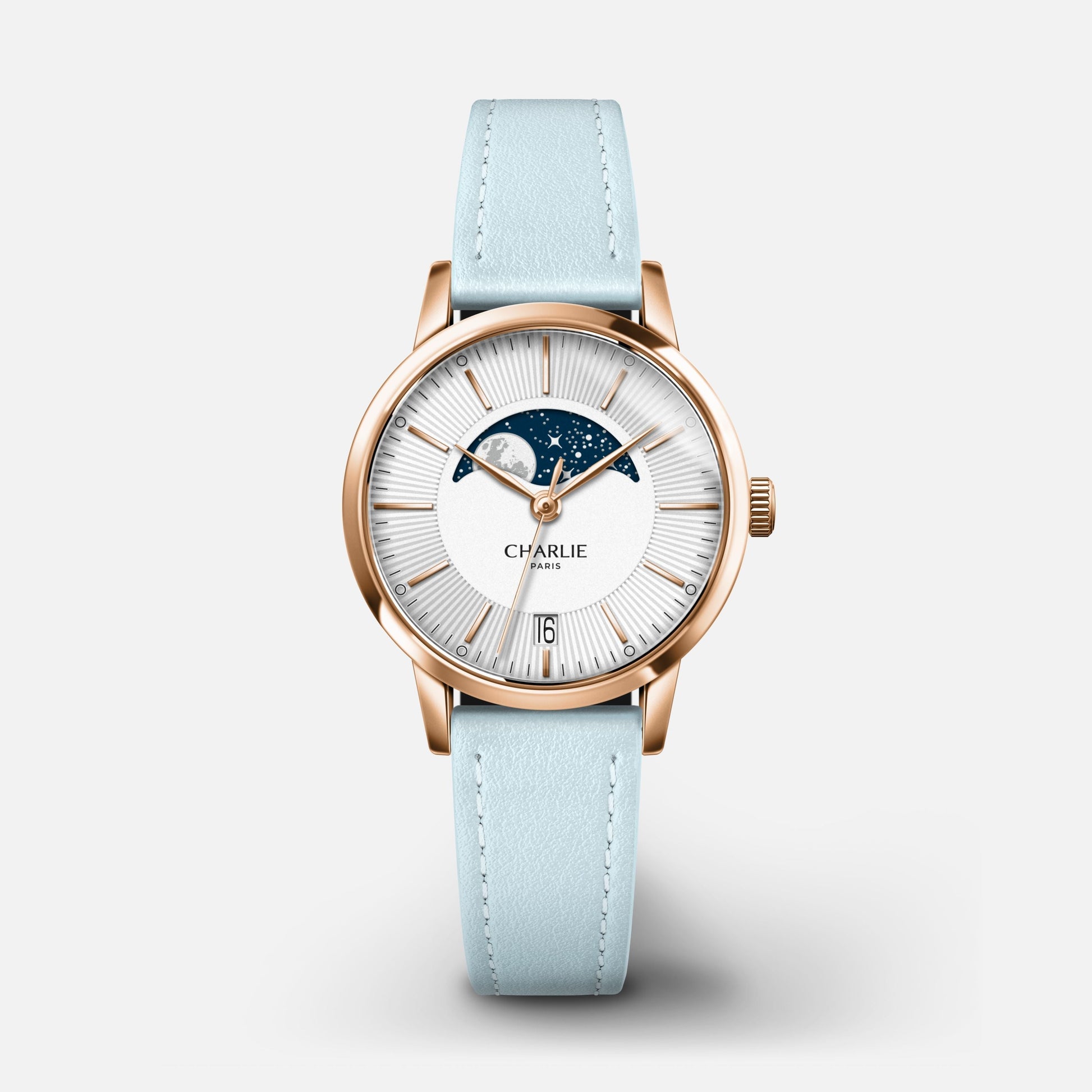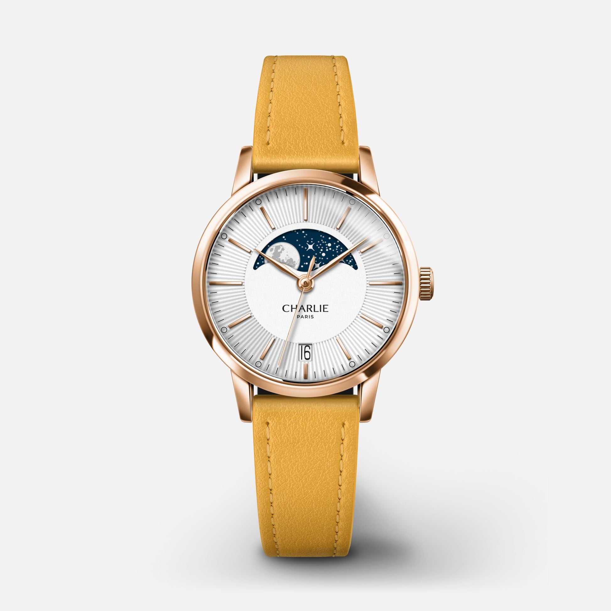 Dessinée et assemblée en France, la Sully Phase de Lune présente des lignes épurées, au design à la fois classique et contemporain. Cette montre femme aux bracelets interchangeables est dotée d'un mouvement à quartz suisse parfaitement logé dans un boîtier de 30mm de diamètre d’une grande finesse. Forte de son identité graphique, la lune tout en rondeur et subtilité se dévoile avec précision.