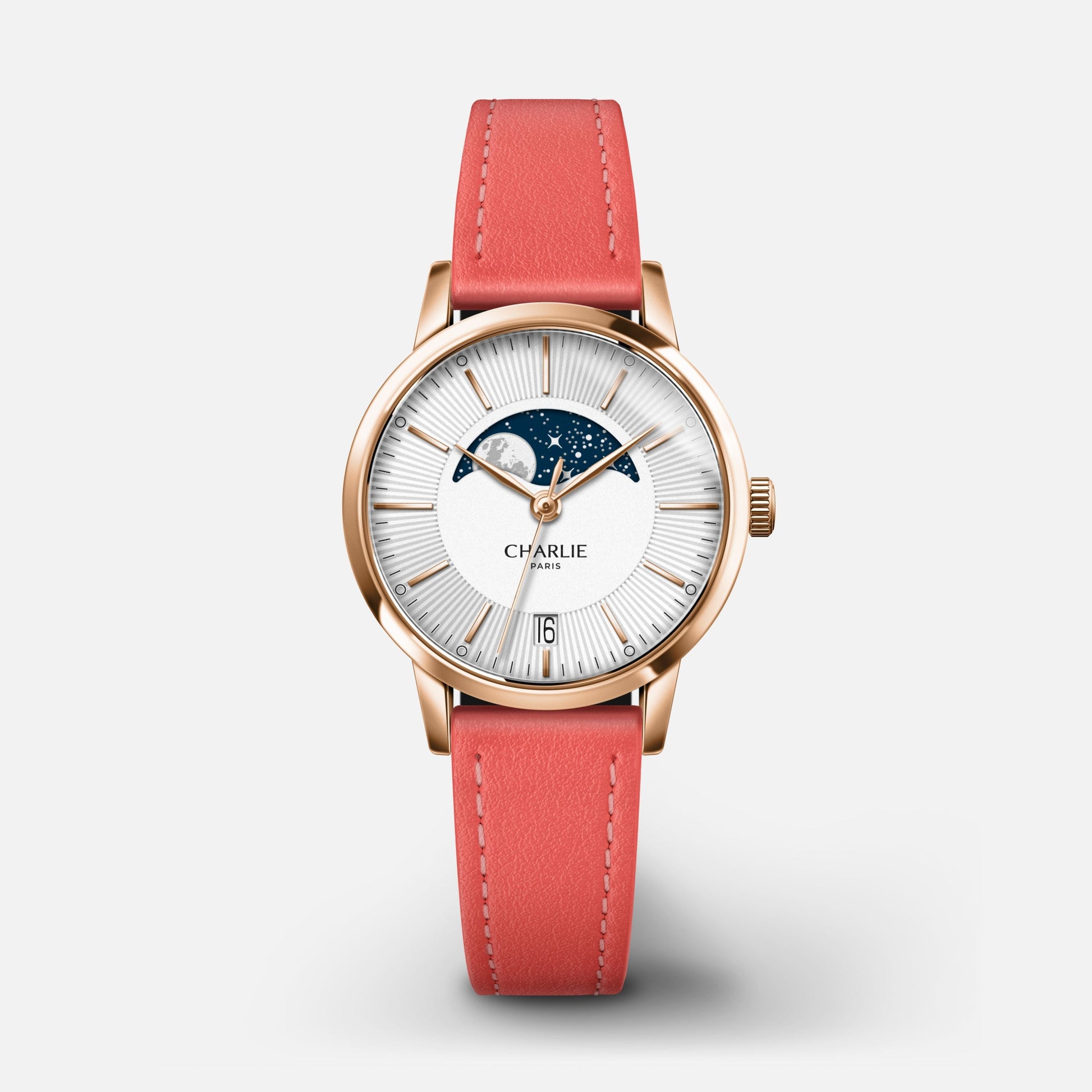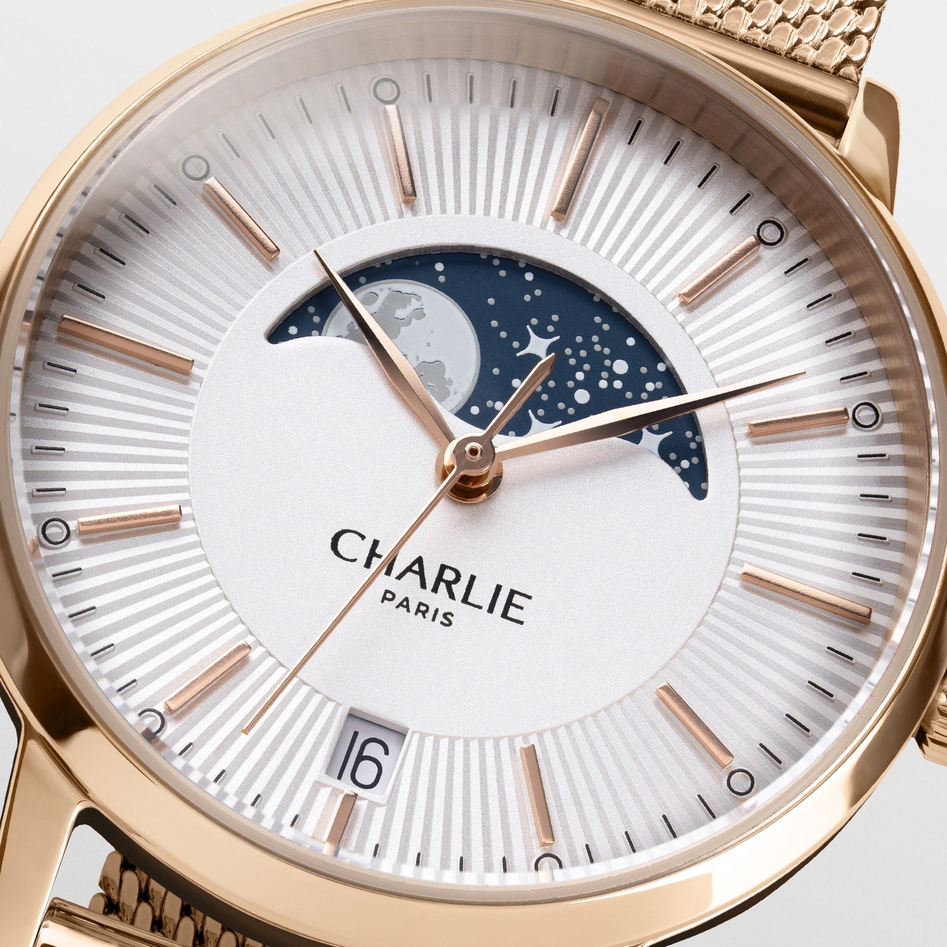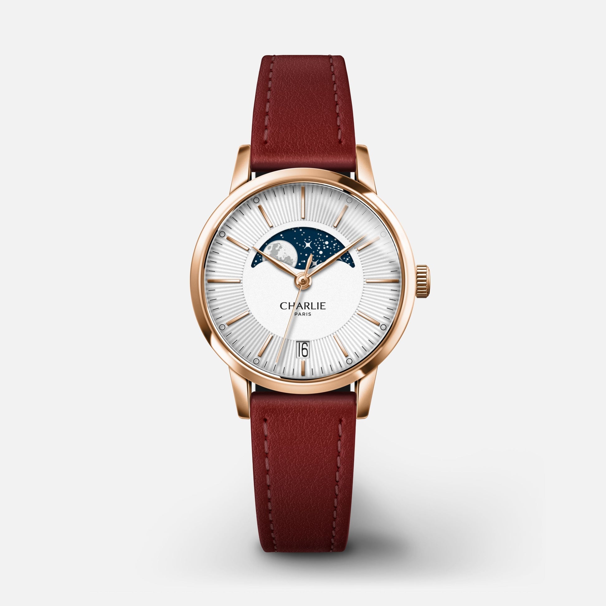 Dessinée et assemblée en France, la Sully Phase de Lune présente des lignes épurées, au design à la fois classique et contemporain. Cette montre femme aux bracelets interchangeables est dotée d'un mouvement à quartz suisse parfaitement logé dans un boîtier de 30mm de diamètre d’une grande finesse. Forte de son identité graphique, la lune tout en rondeur et subtilité se dévoile avec précision.