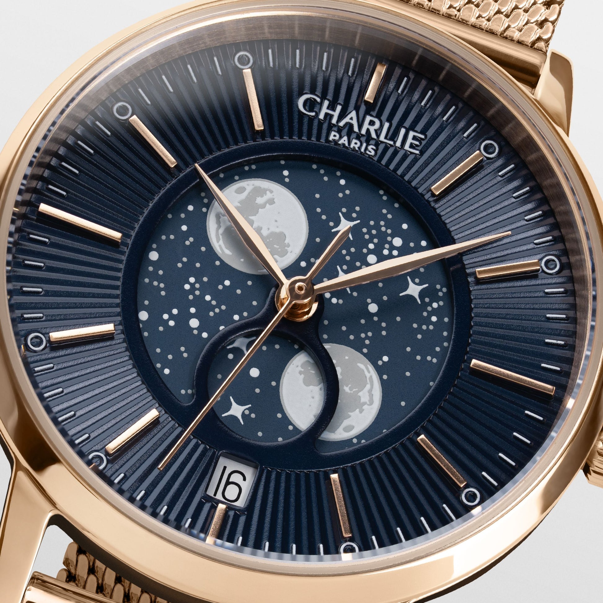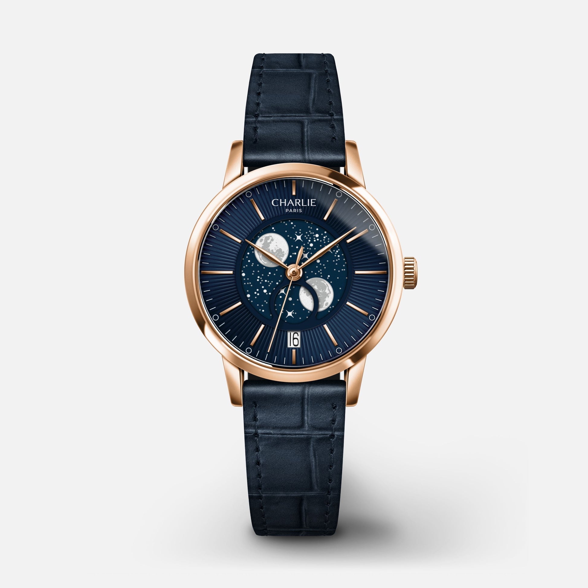 Dessinée et assemblée en France, la Sully Phase de Lune présente des lignes épurées, au design à la fois classique et contemporain. Cette montre femme aux bracelets interchangeables est dotée d'un mouvement à quartz suisse parfaitement logé dans un boîtier de 30mm de diamètre d’une grande finesse. Forte de son identité graphique, la lune tout en rondeur et subtilité se dévoile avec précision.