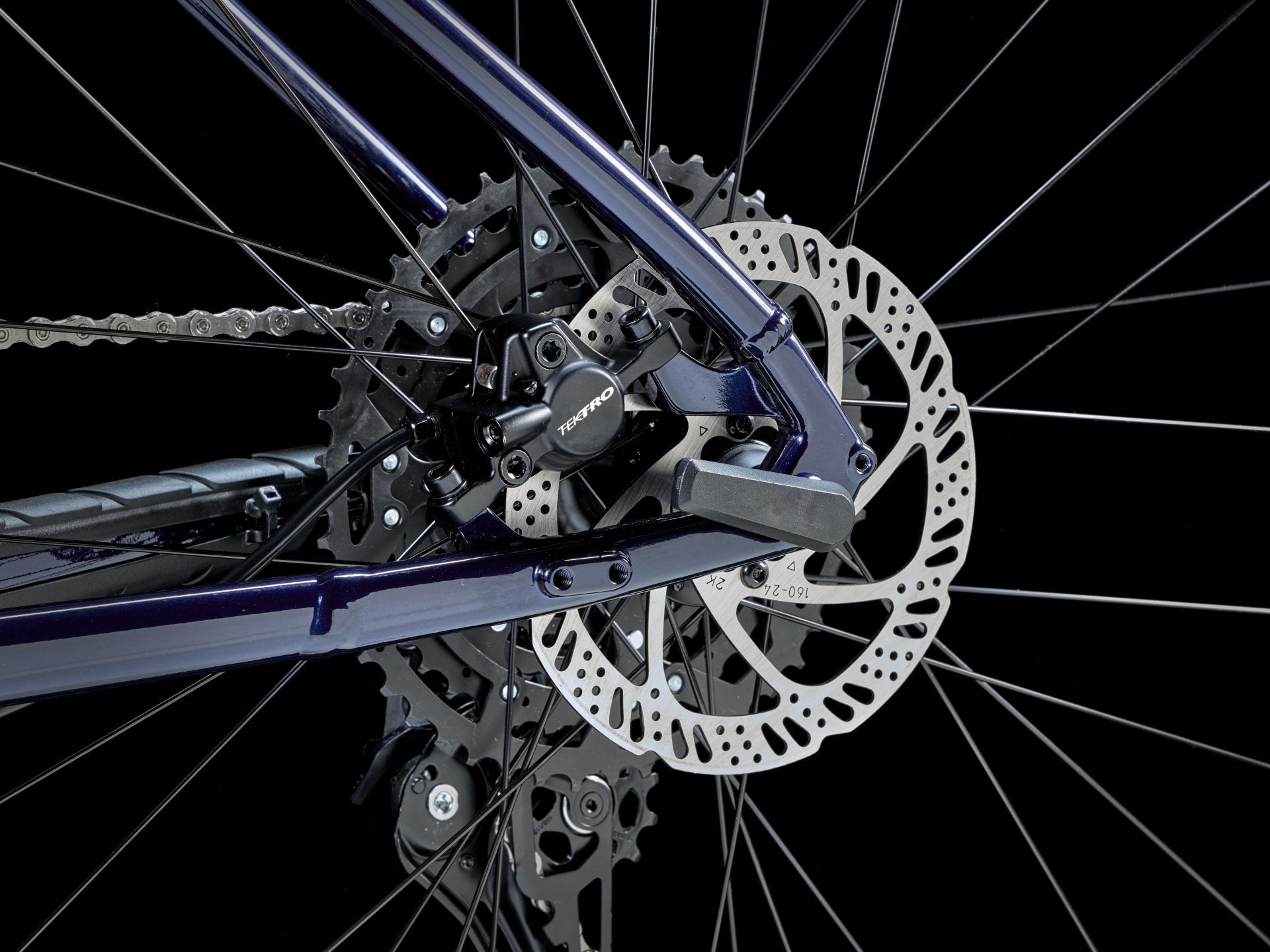 Un cadre léger en aluminium doté d'une géométrie moderne adaptée au trail et d’un acheminement interne des câbles afin de les protéger et de conserver l’élégance du vélo. Une fourche télescopique avant RockShox Judy de 100 mm qui amortit l’impact contre les pierres, les racines et les bosses sur les sentiers, une transmission fluide à 10 vitesses Shimano CUES et la puissante force de freinage de freins à disque hydrauliques.